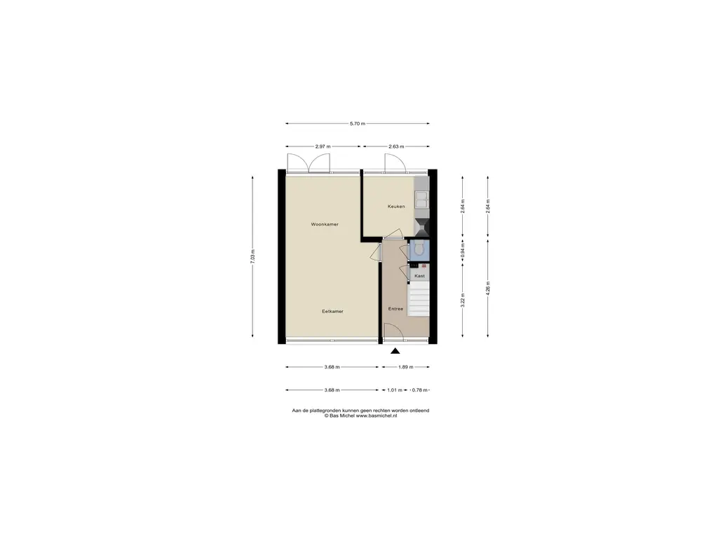 De keuken (ca. 7 m2) is gelegen aan de achterzijde van de woning en biedt toegang tot de achtertuin. De keuken is uitgevoerd in een rechte opstelling en is voorzien van een 4-pits gaskookplaat, oven en een dubbele spoelbak. De keuken is verder afgewerkt met linoleum.