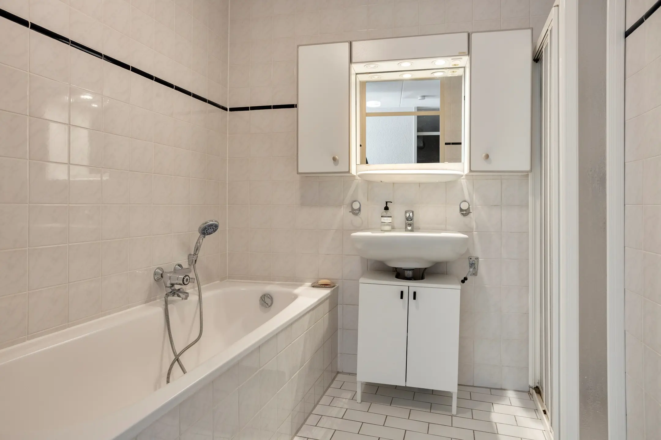 This stunning 3-room apartment offers comfort, space, and a beautiful view of the water. Situated in a well-maintained apartment complex, you can enjoy a generous living room and a lovely sunny terrace at the rear. From your terrace, you overlook the peaceful courtyard garden and the water. The courtyard is excellently maintained and features a charming wooden chalet for communal use and a terrace directly by the water.