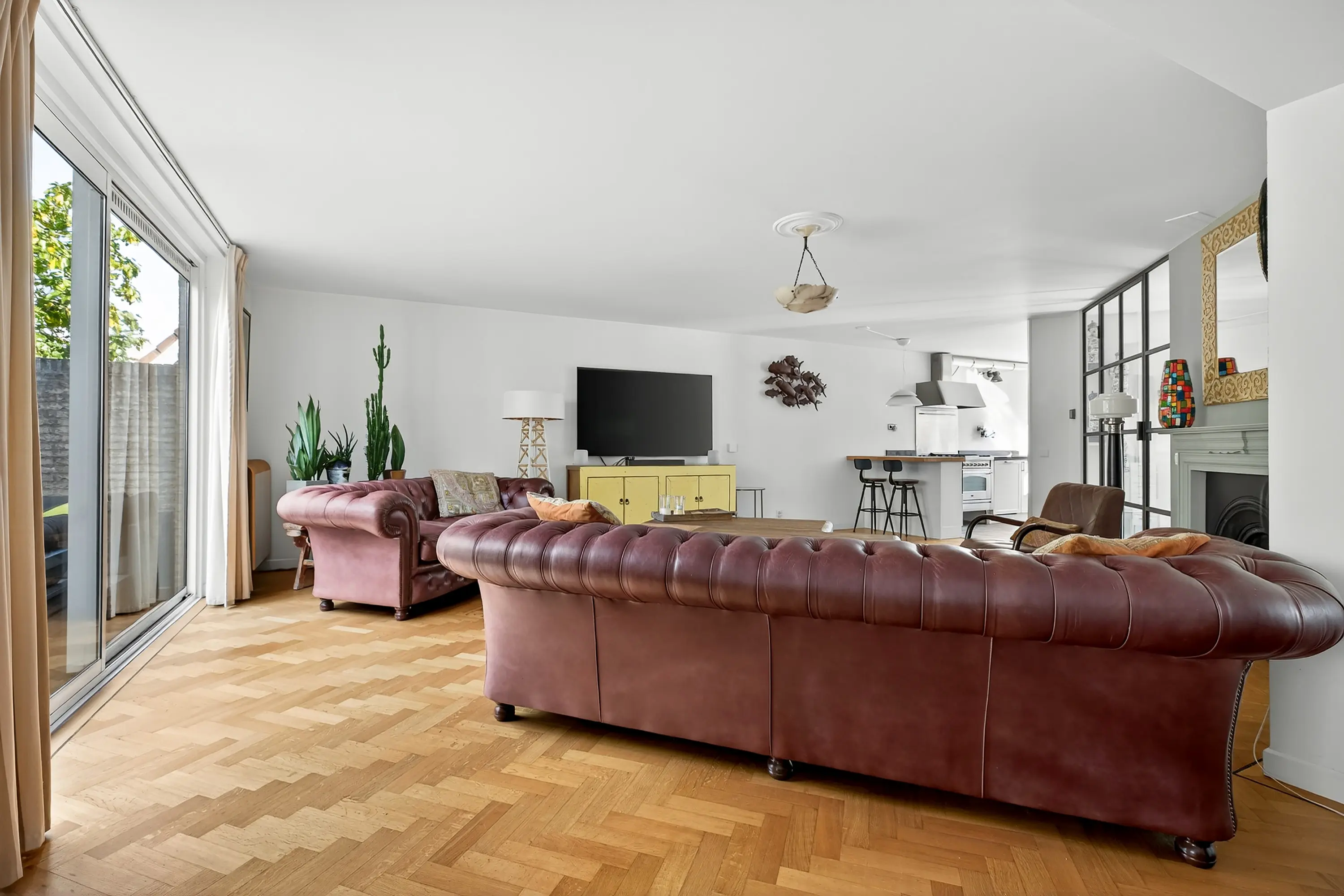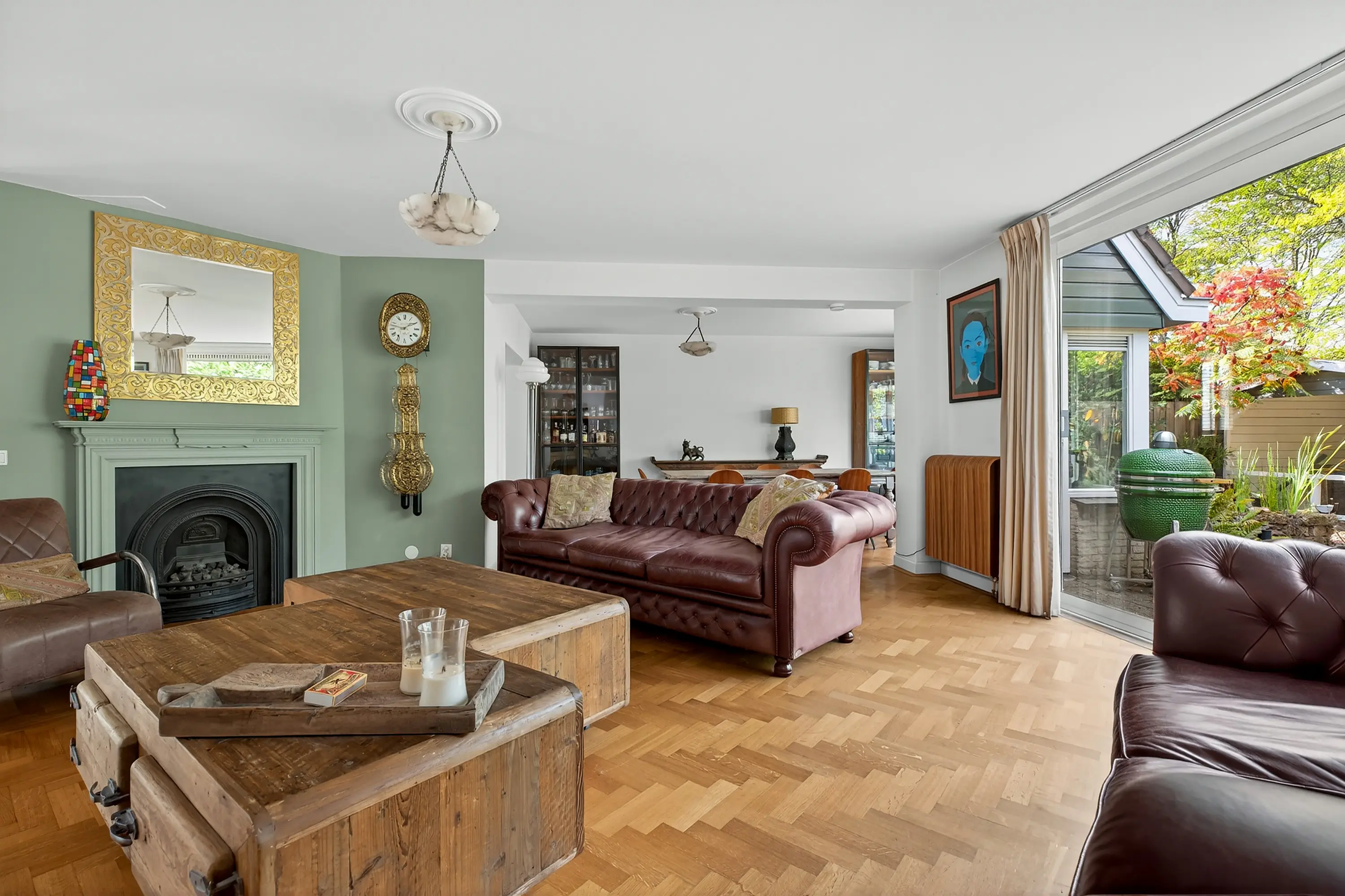- Speelse indeling met tuinkamer, werkkamer en visgraat parketvloer