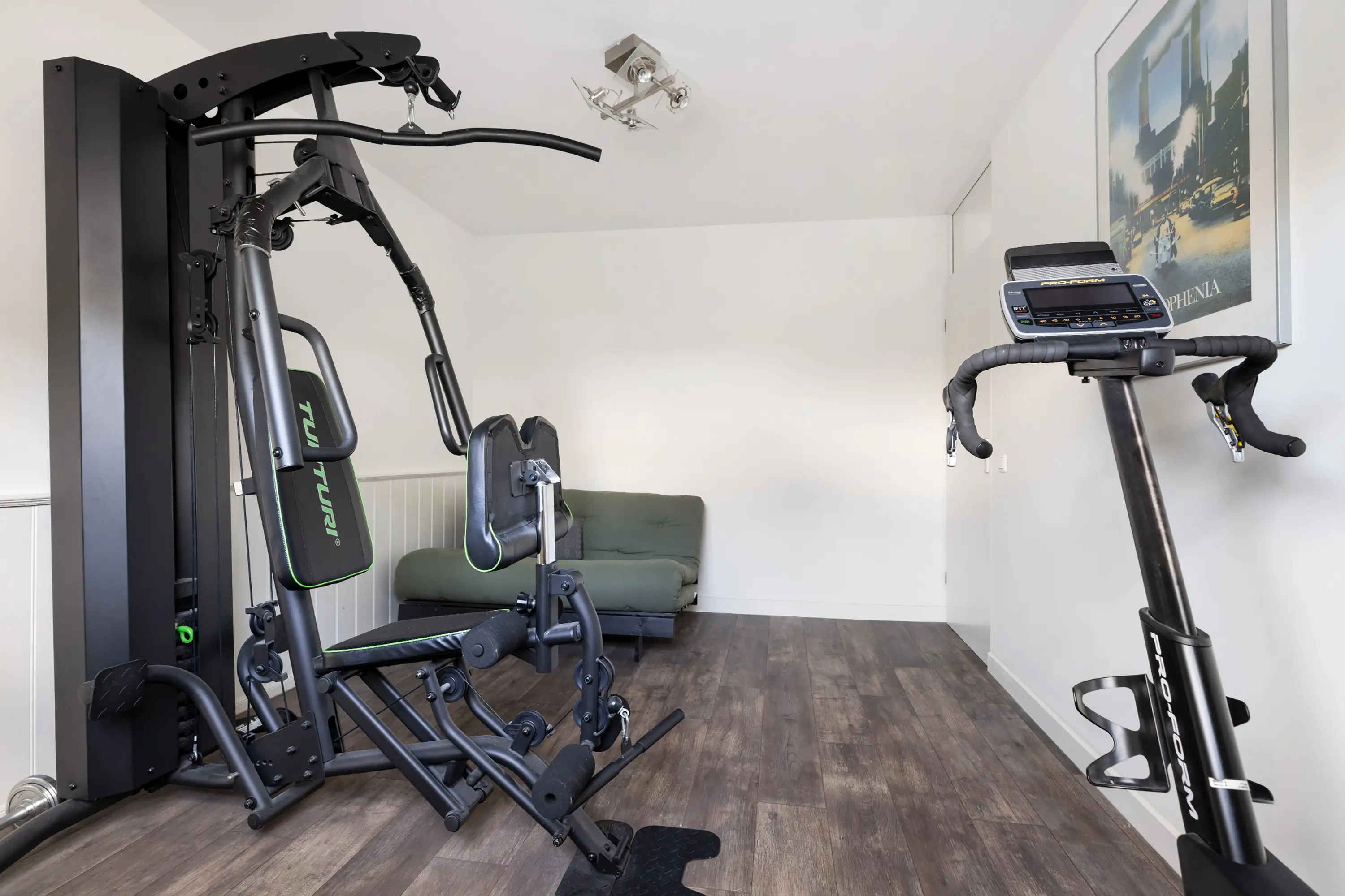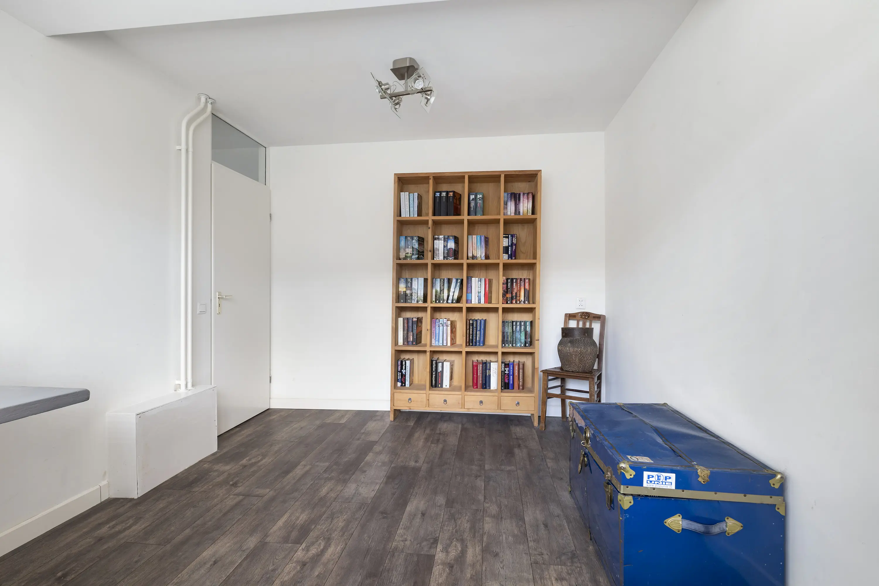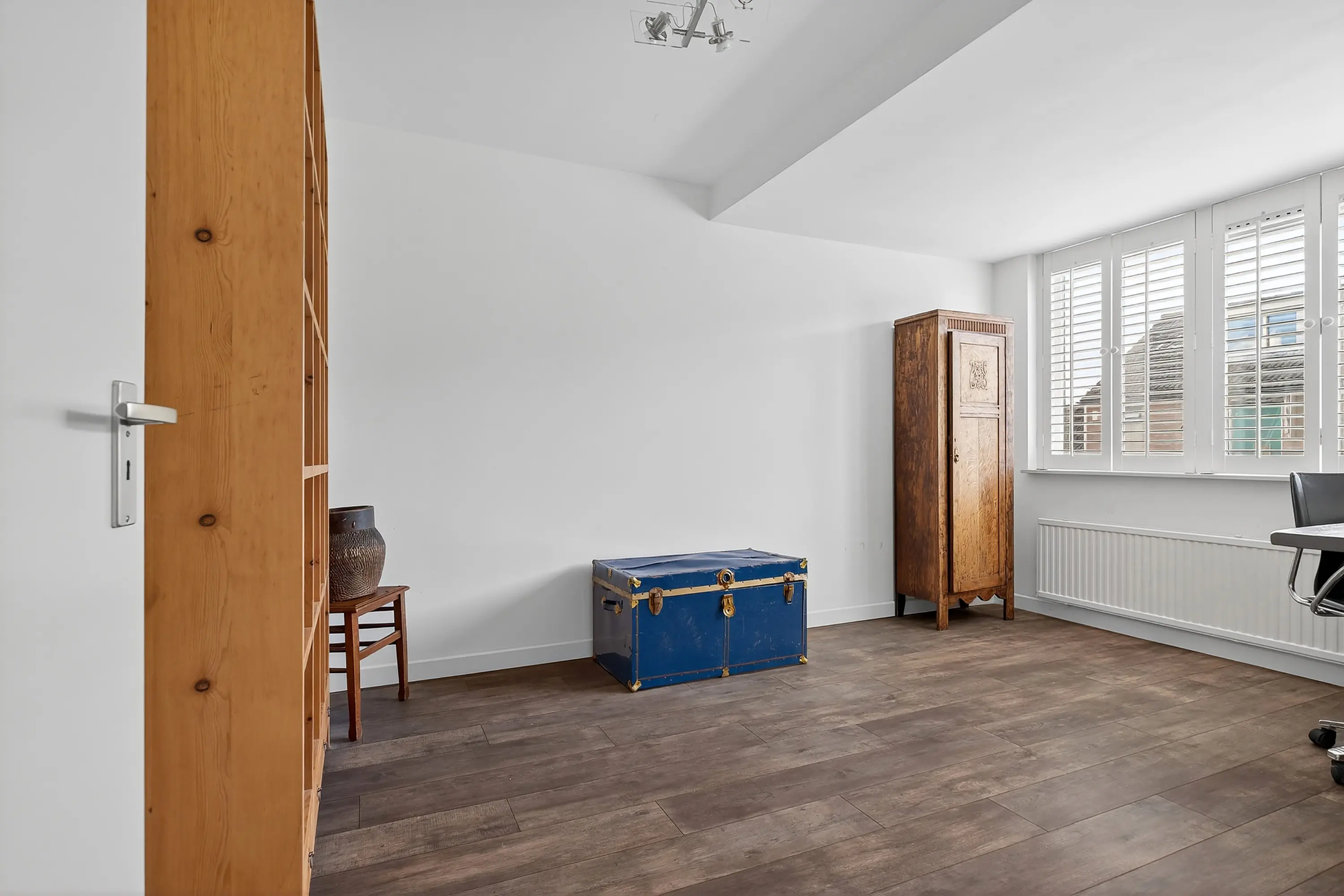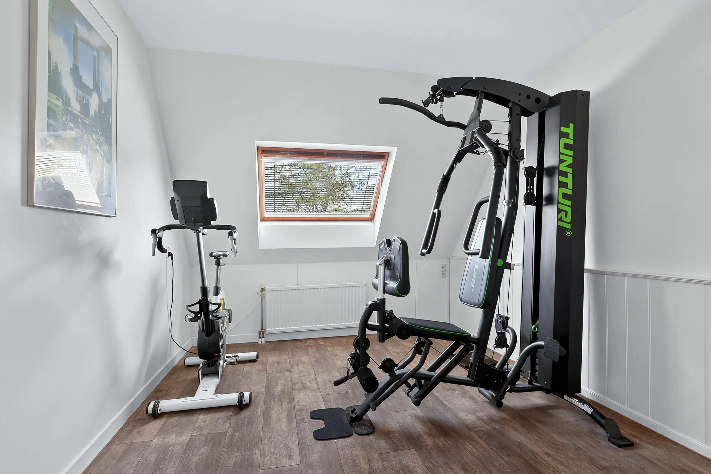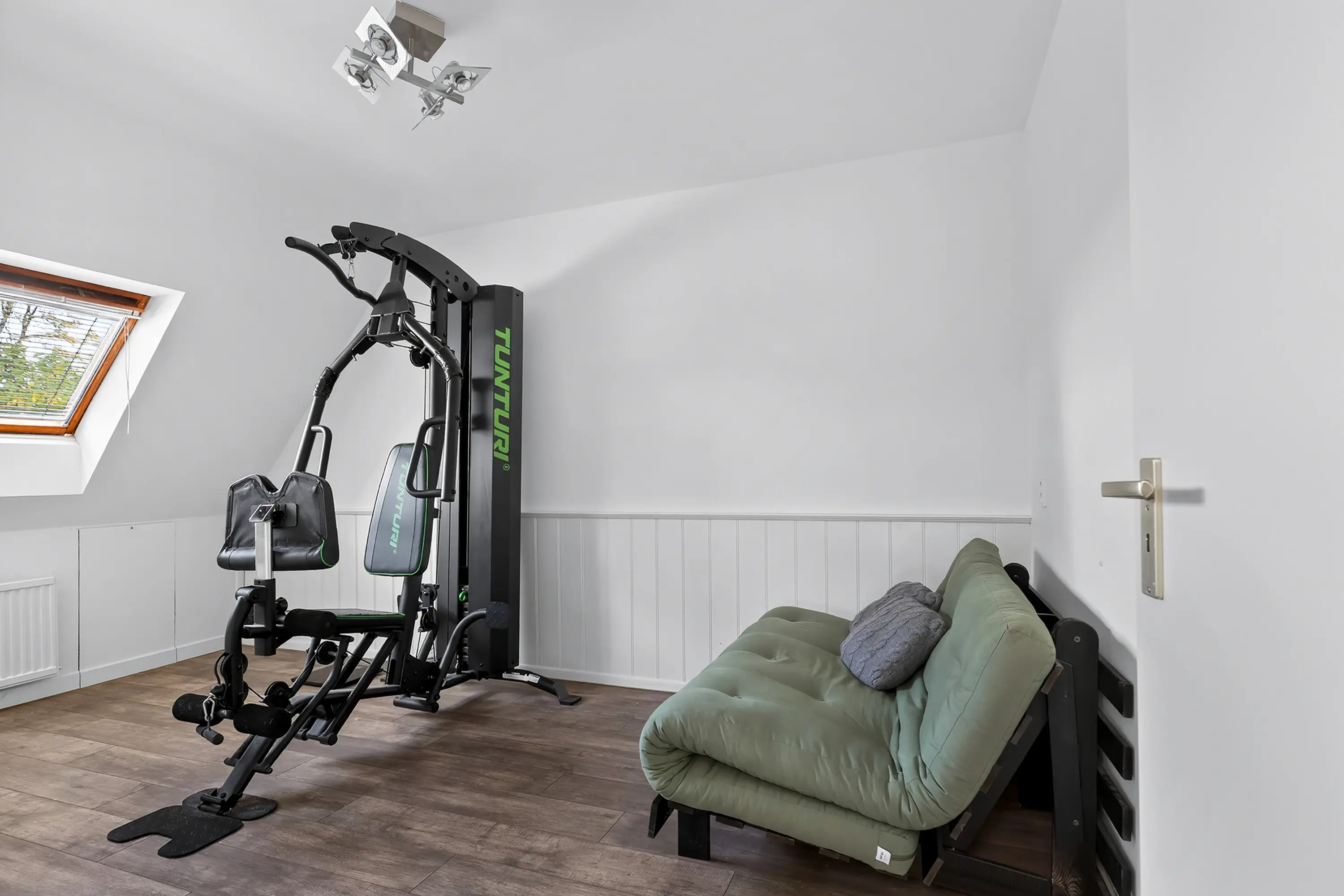 Hier vindt u tevens de aansluitingen voor de wasmachine en droger, de opstelling van de warmtepomp (2023) en de CV-installatie. Dit alles fraai weggewerkt achter een schuifkastenwand. Ook deze verdieping is netjes afgewerkt met een laminaatvloer.