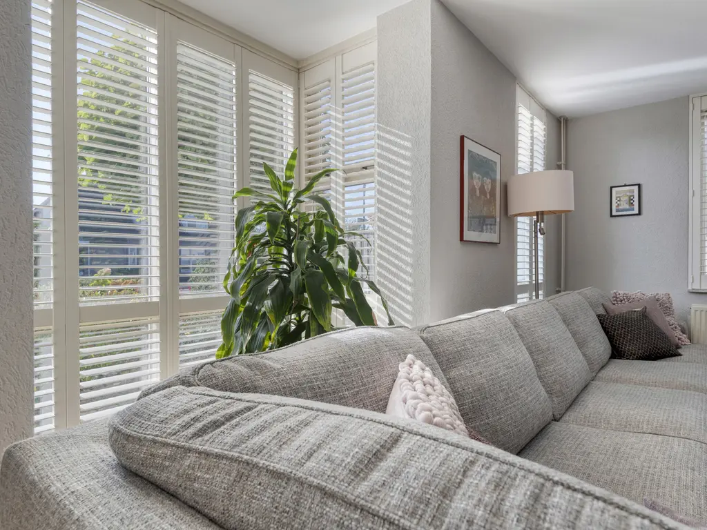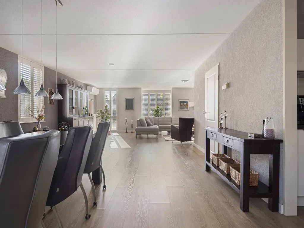 De entree biedt toegang tot de hal met toilet en meterkast. De ruime, lichte woonkamer heeft grote raampartijen, een fraaie vloer en biedt volop leefruimte voor een gezellige zithoek en een grote eettafel.