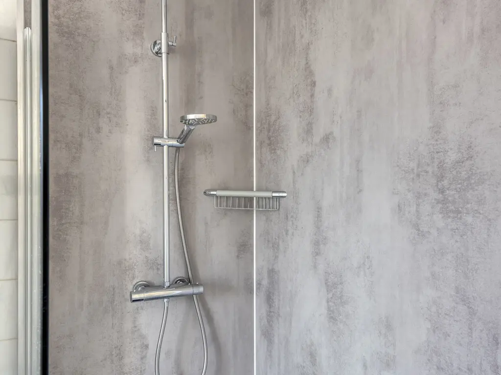 Daarnaast is er een aparte wasruimte met aansluiting voor wasmachine en droger, en volop bergruimte achter de knieschotten.