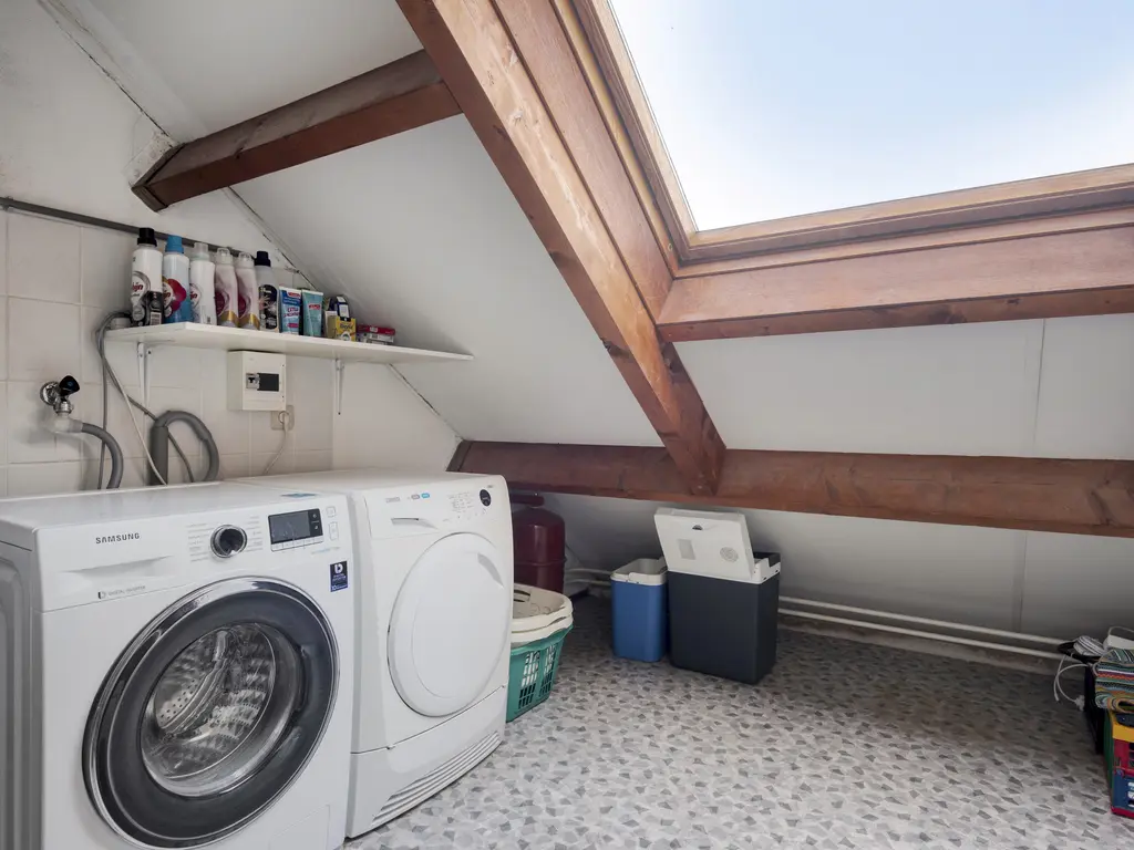 Daarnaast is er een aparte wasruimte met aansluiting voor wasmachine en droger, en volop bergruimte achter de knieschotten.