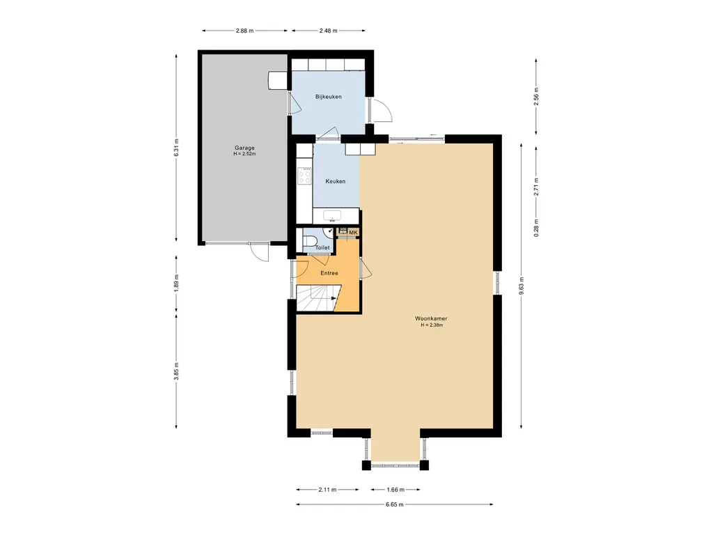 Aansluitend bevindt zich de bijkeuken, met extra opbergruimte en toegang tot de ruime garage.