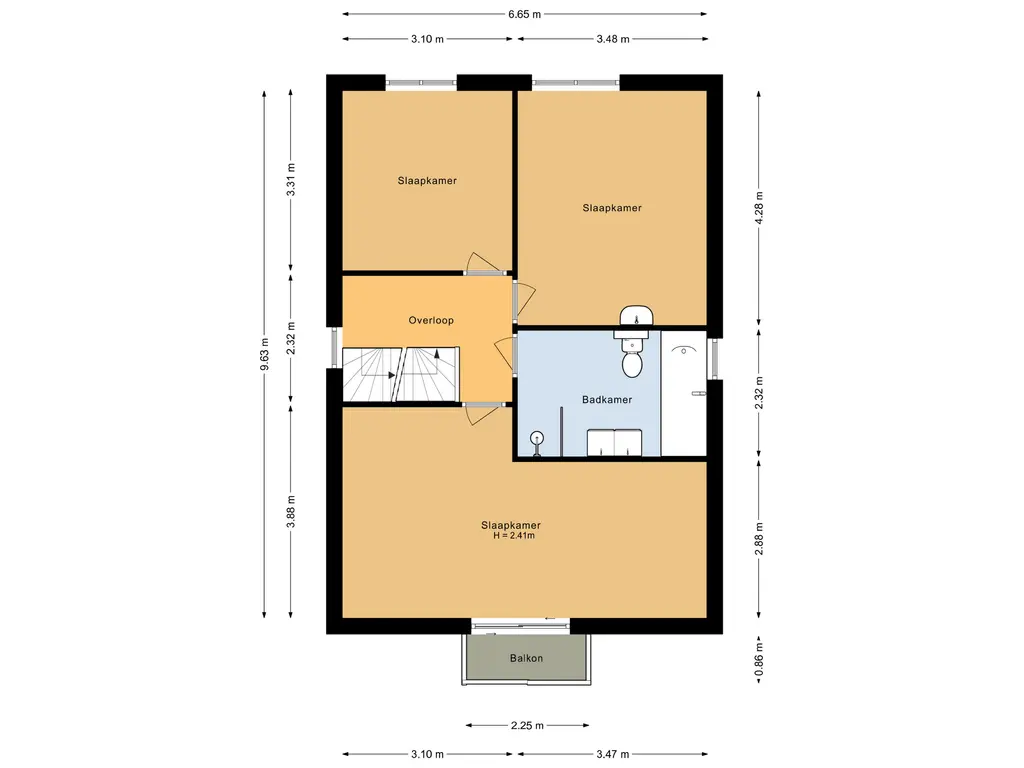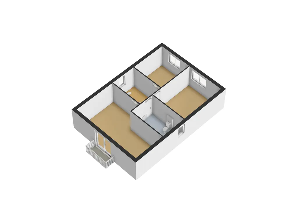 De slaapkamer aan de voorzijde heeft openslaande deuren naar een balkon. Alle kamers zijn licht, sfeervol en voorzien van een doorlopende laminaatvloer.