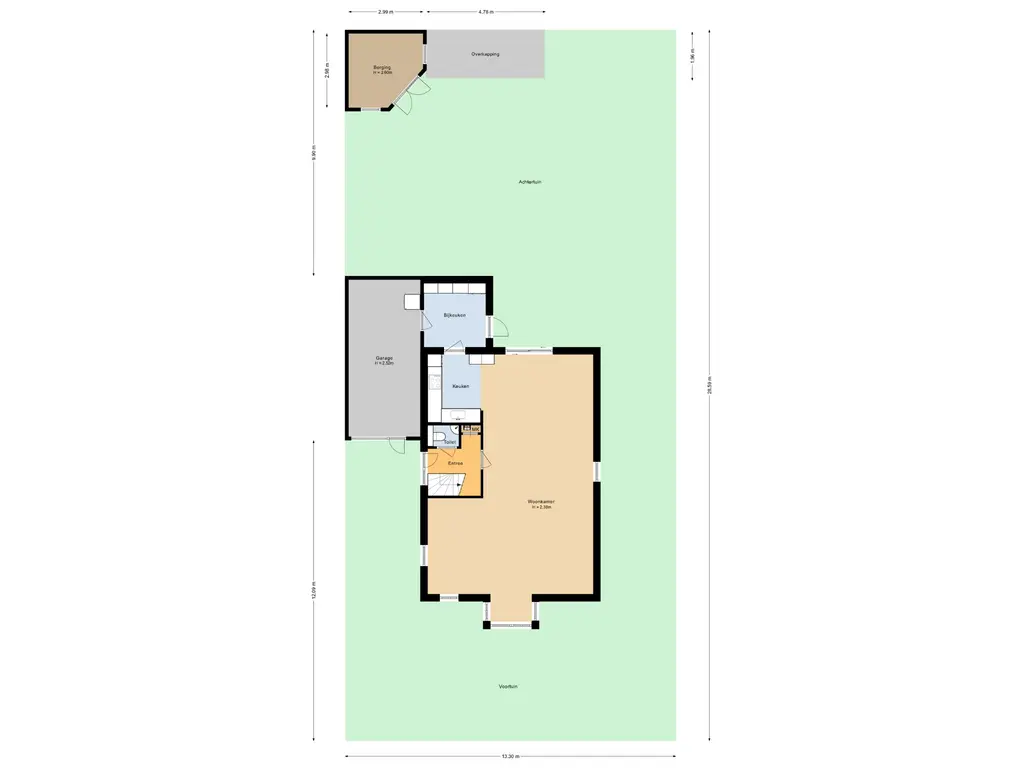 een vrijstaande berging (8 m²) voor fietsen en tuingereedschap,
