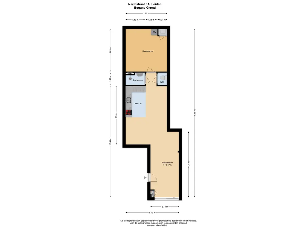 - Woning van 59 m², gebruiksoppervlakte van 43 m² + een overige inpandige ruimte van 16 m², die als slaapkamer wordt gebruikt