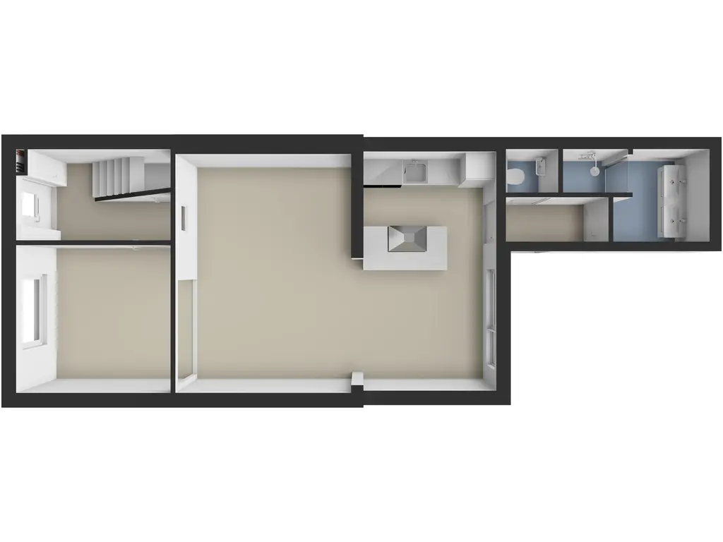 Er is een aparte living gecreëerd die in (half)open verbinding staat met de keuken. De keuken (2020) is modern, voorzien van een praktisch kookeiland en voldoende kastruimte voor al je kookspullen en voorraad. Vanuit de keuken geeft de stoere zwarte schuifdeur toegang tot de hal, de aparte toiletruimte én de badkamer.