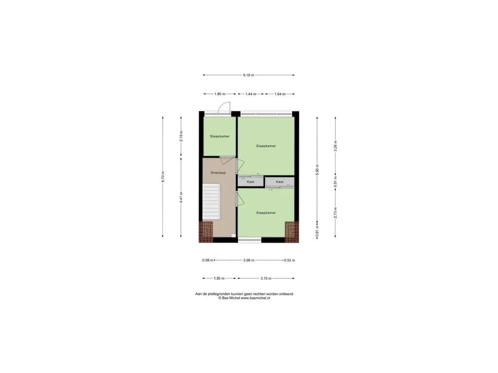 De eerste verdieping biedt drie slaapkamers van circa 9 m², 10 m² en 4 m².