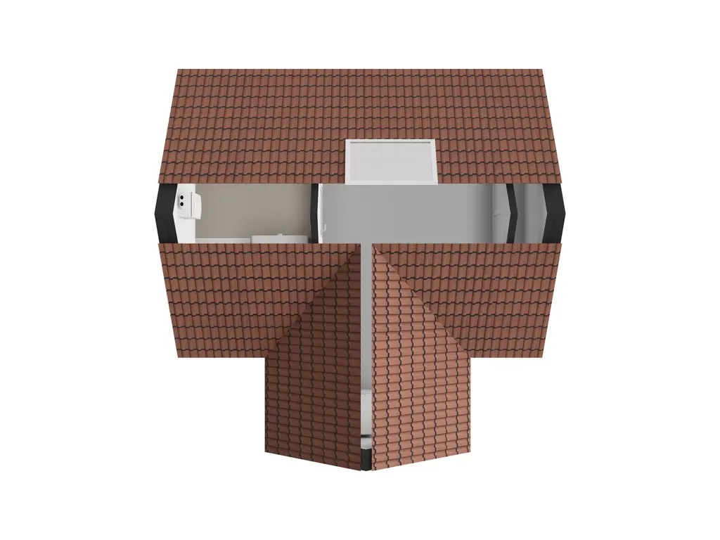 Via de trapopgang bereik je de tweede verdieping: een praktische bergzolder met dakraam, knieschotten en volop bergruimte. Hier vind je onder andere de opstelplaats voor de CV-combiketel, aansluitingen voor wasmachine en droger, en de omvormer van de zonnepanelen. Slim, overzichtelijk en functioneel.