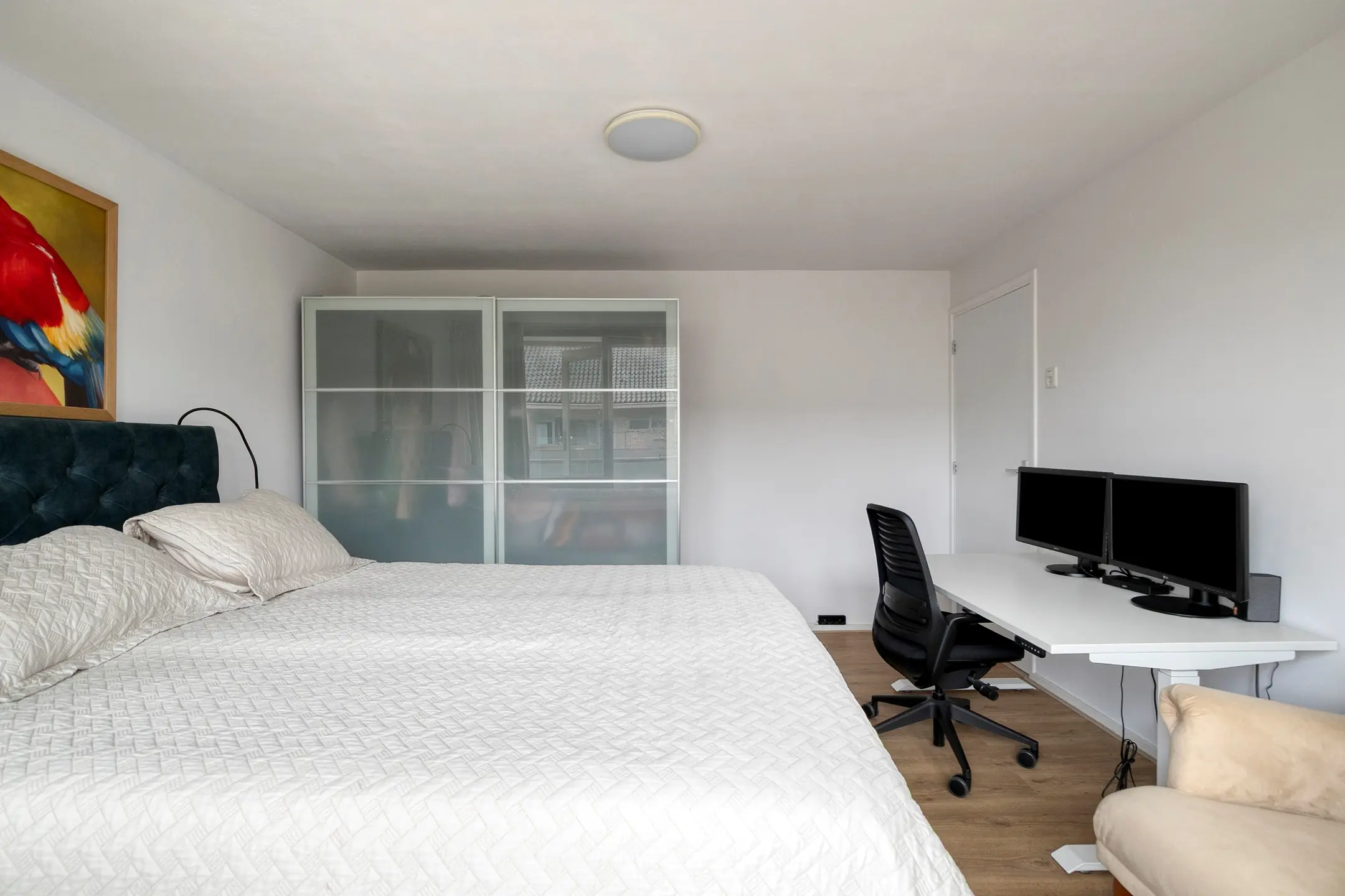 De slaapkamers zijn verdeeld over twee woonlagen en bieden volop licht en ruimte. De diepe achtertuin op het noorden is verzorgd aangelegd en beschikt over een stenen berging met elektra.
