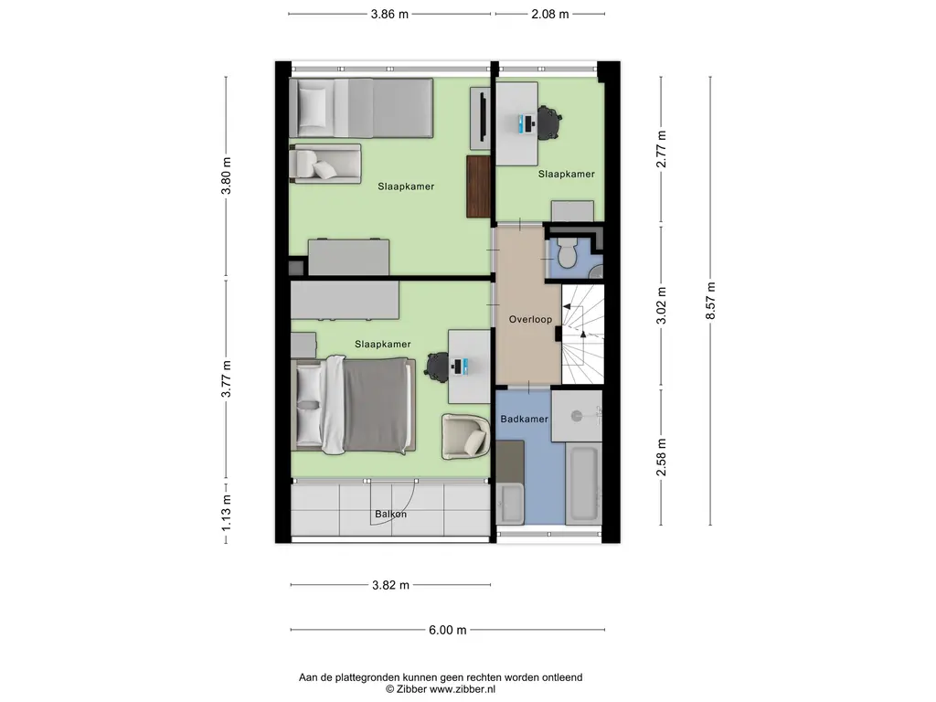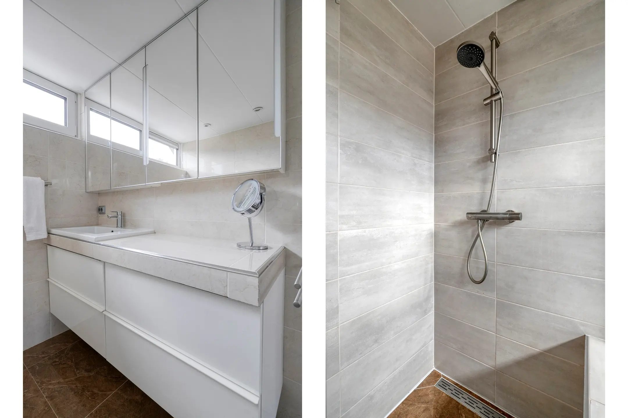 De overloop geeft toegang tot drie ruime slaapkamers, waarvan één toegang heeft tot het balkon. Deze verdieping beschikt verder over een nette badkamer, voorzien van douche/bad, wastafel, natuurlijke ventilatie en apart toilet.