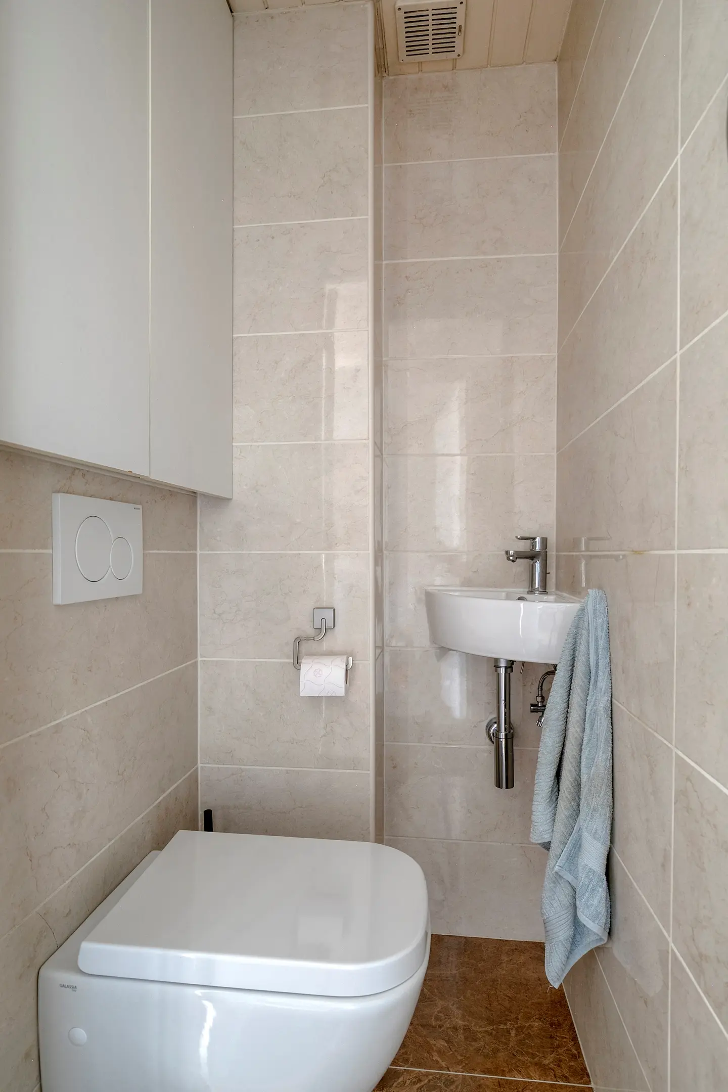 The landing provides access to three generous bedrooms, one of which has access to the balcony. This floor also features a neat bathroom with shower/bath, washbasin, natural ventilation and a separate toilet.