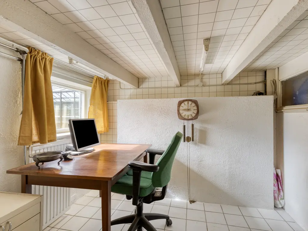 Het souterrain biedt veel praktische bergruimte en is ideaal voor het opbergen van al uw spullen, inclusief tuin- en klusgereedschap. U vindt hier een pantry met aansluitingen voor de wasapparatuur, een vaste kast met gedeeltelijk de meterkast, een technische ruimte met opstelling voor de Remeha cv-ketel uit 2007 en een toiletruimte met toilet en wasbak. Vanuit het souterrain is tevens directe toegang tot de achtertuin. Het souterrain vormt zo de perfecte plek om al het benodigde gereedschap en materiaal netjes op te bergen.