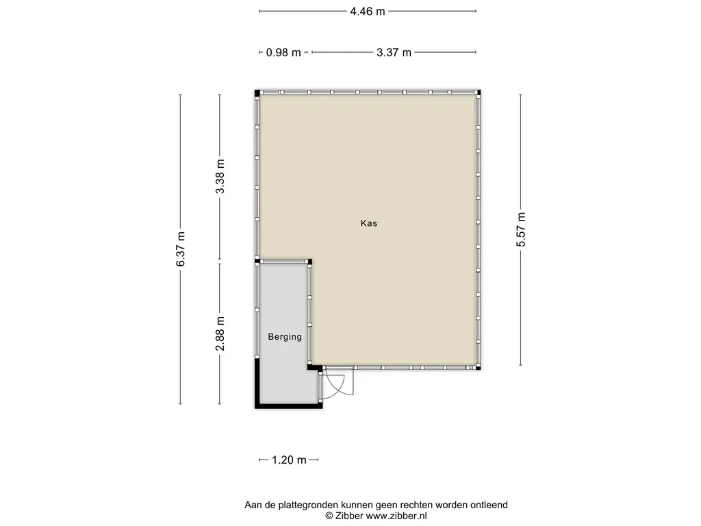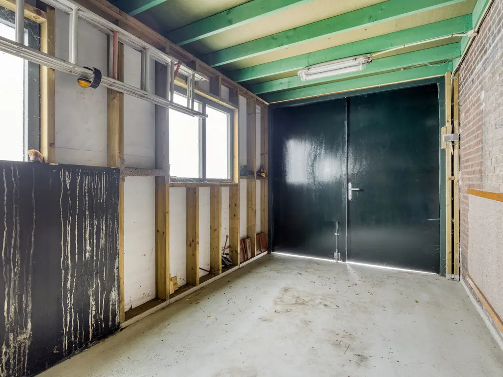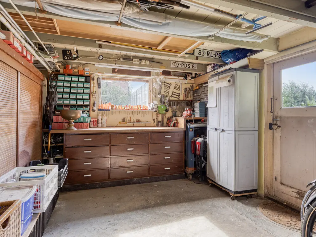 Aangebouwde garage (ca. 14 m2) voorzien van openslaande deuren, elektra en stopcontacten.