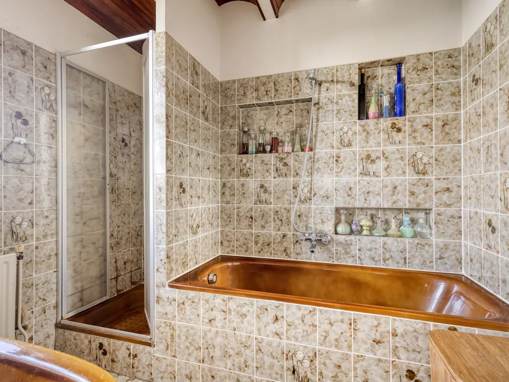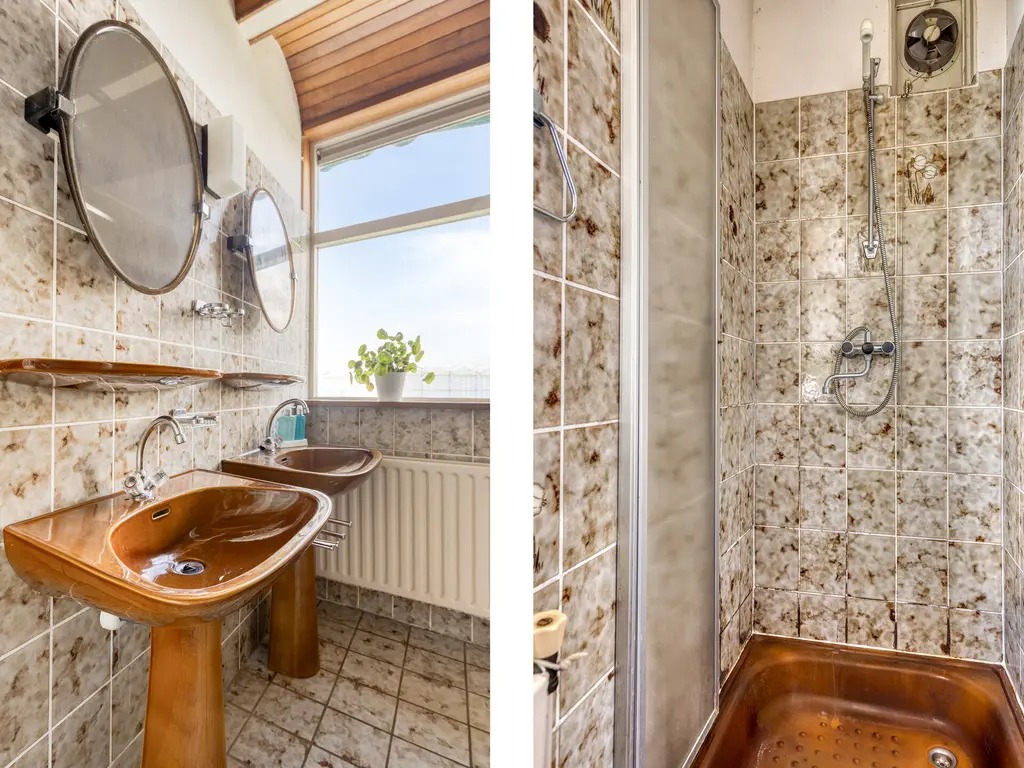 De badkamer (ca. 6 m2) bevindt zich op de begane grond en biedt alle basisvoorzieningen voor comfortabel gebruik. De ruimte is uitgerust met een ligbad, een dubbele wastafel en een douchecabine. De wanden en vloer zijn volledig betegeld, waardoor de badkamer direct functioneel is. Modernisering is gewenst.