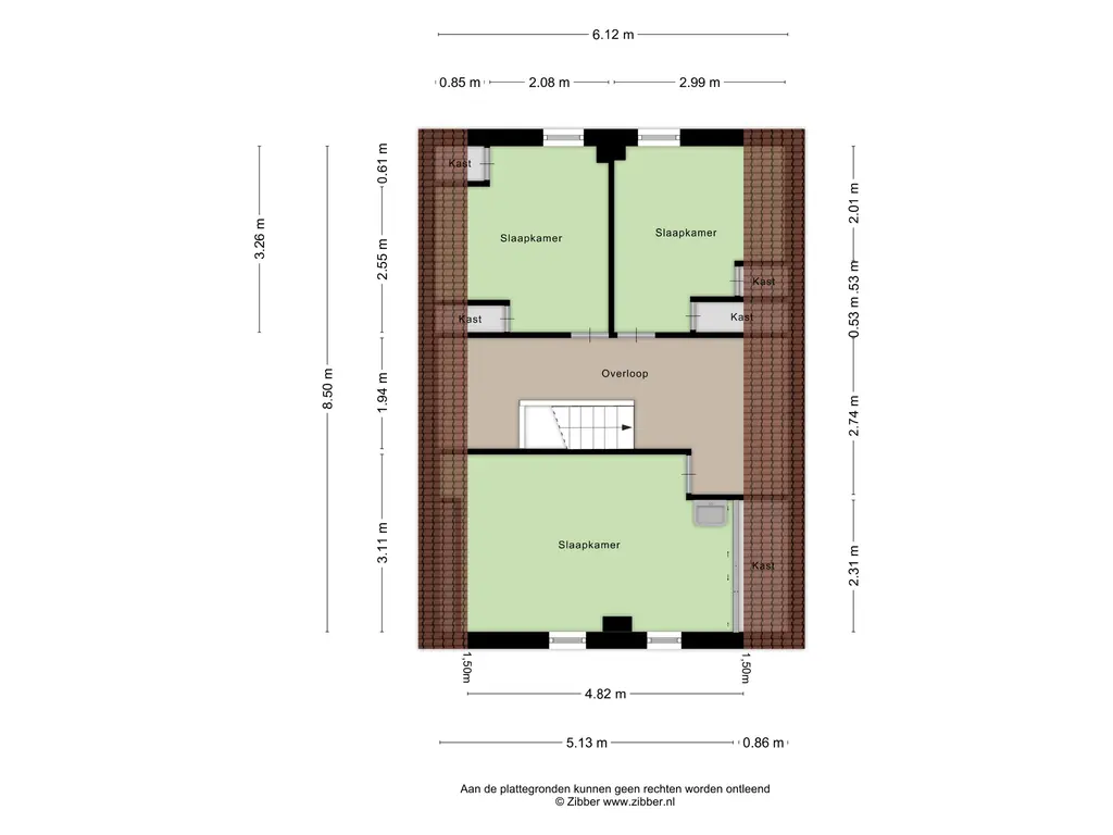 Slaapkamer 3 (ca. 7 m2) is gelegen aan de zijkant van de woning en beschikt over twee vaste kasten en bergruimte achter het knieschot.