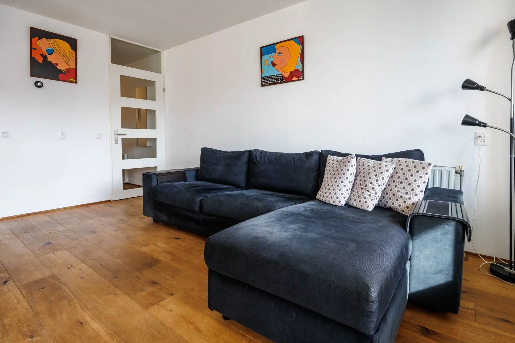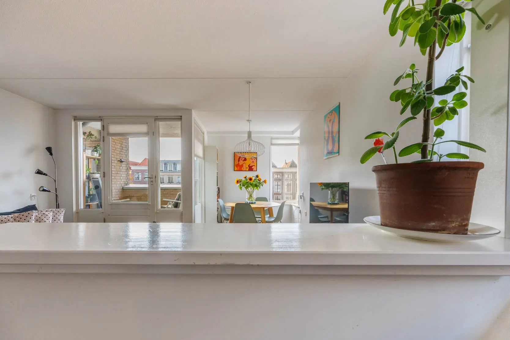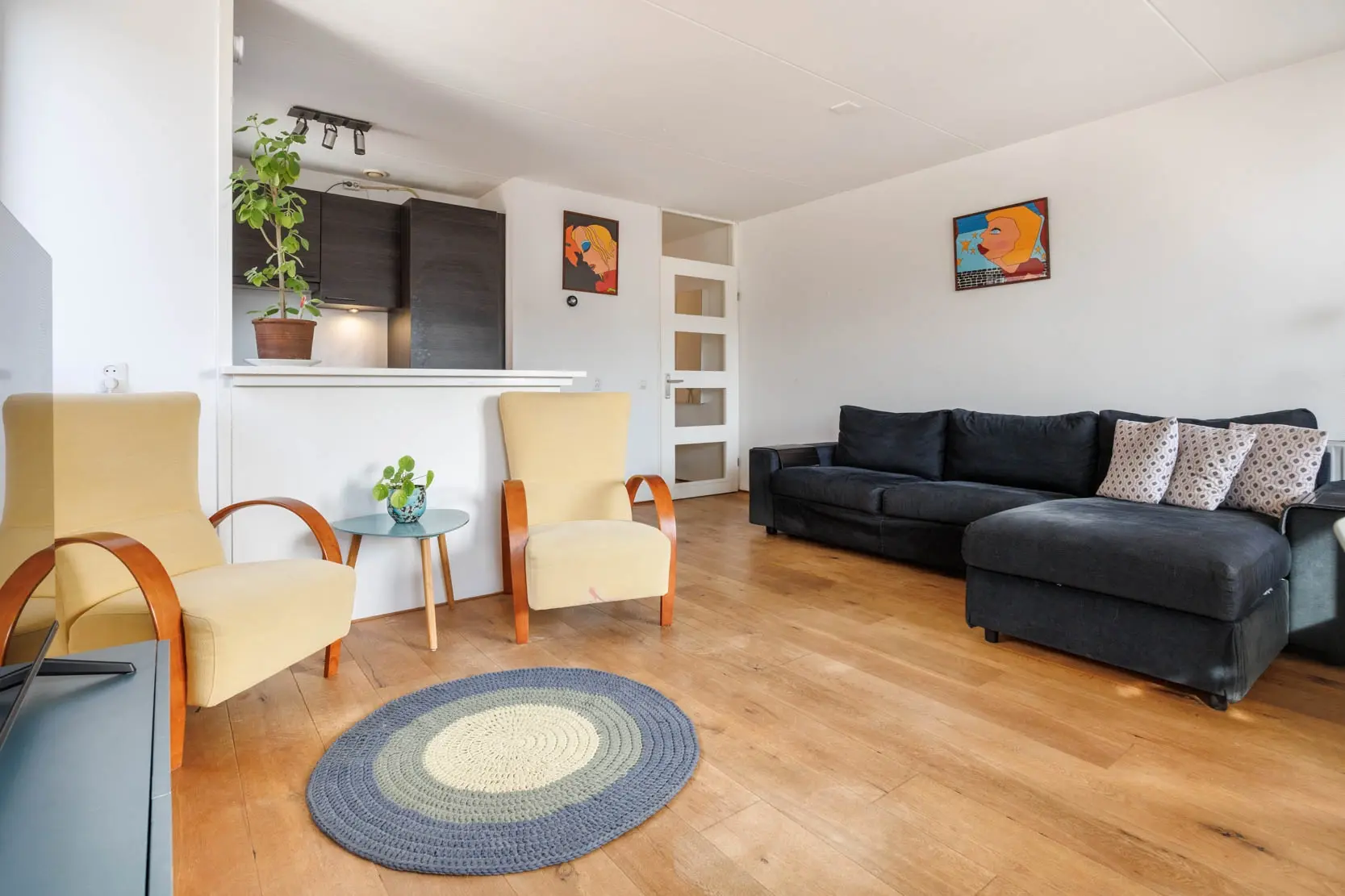 De heerlijke ruime en zonnige woonkamer is door de hoekligging en de vele ramen opvallend licht en daardoor heb je ook vanaf alle zitplekjes fraai uitzicht. De moderne open keuken beschikt over diverse inbouwapparatuur o.a. een 4-pitsgasfornuis, een combi oven/magnetron, een vaatwasser, een koel-/vries combinatie en een ingebouwde afzuigkap in de bovenkastje. Op het gezellige balkon (zuiden) heb je veel privacy en kan je heerlijk genieten van het zonnetje en het uitzicht.