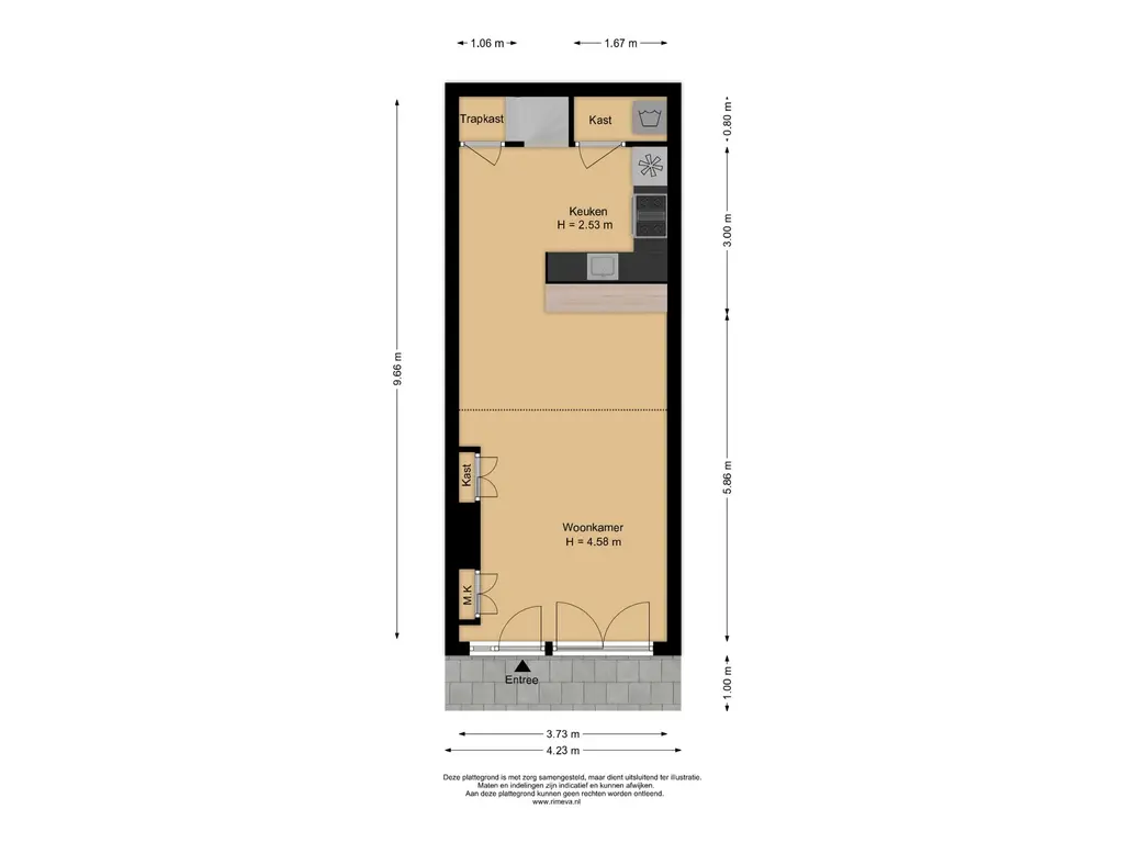 • Gebruiksoppervlakte: circa 59 m²