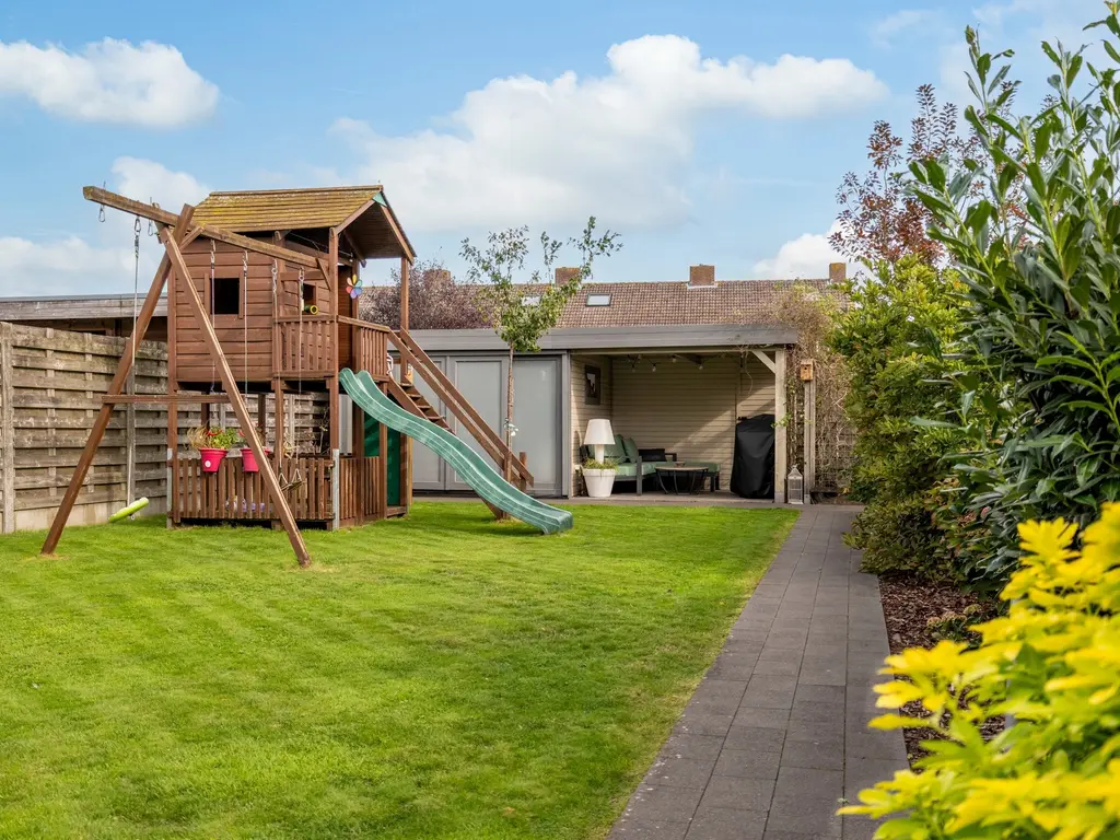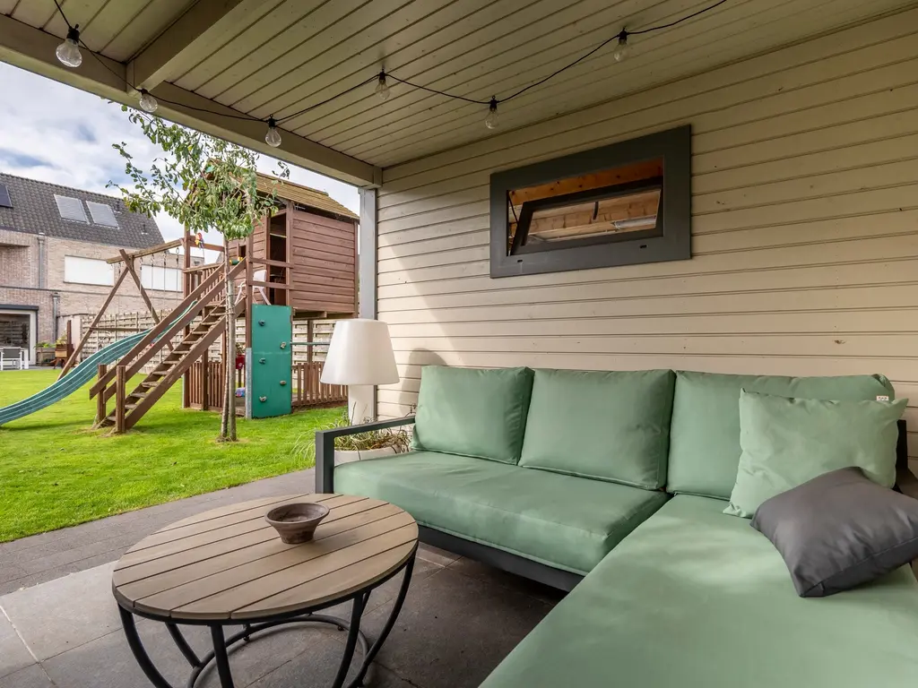 Direct aansluitend aan de keuken ligt een gezellig terras, gevolgd door een speelgazon voor de kinderen.