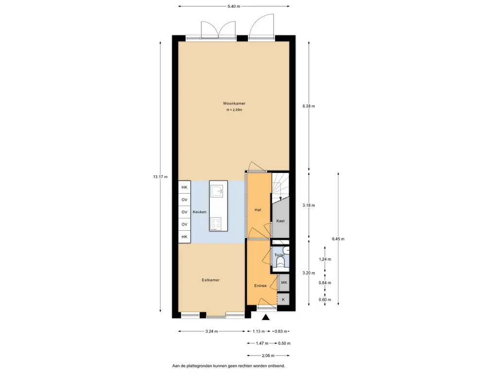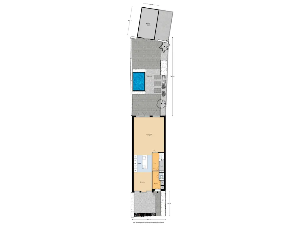 Via de verzorgde voortuin stap je de woning binnen. In de ruime hal vind je de meterkast, garderobe en een modern toilet met fontein. De lichte, tuingerichte woonkamer (ca. 44 m²) heeft grote ramen en openslaande deuren naar de achtertuin, waardoor binnen en buiten mooi in elkaar overlopen. Aan de voorzijde ligt de luxe open keuken met inbouwapparatuur, veel kastruimte en een prettig werkblad. Hier heb je ook direct toegang tot de voortuin.