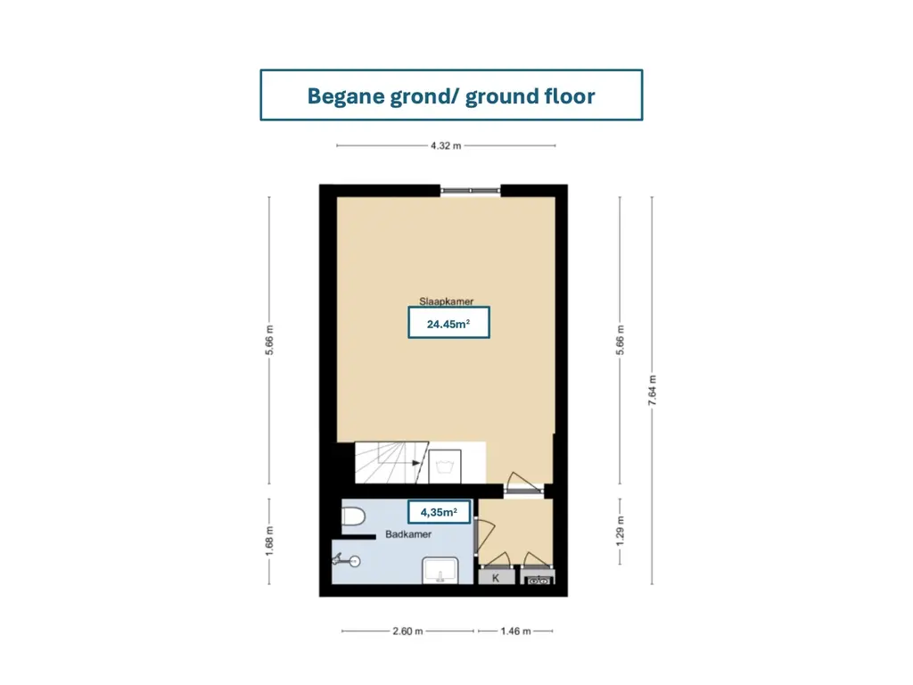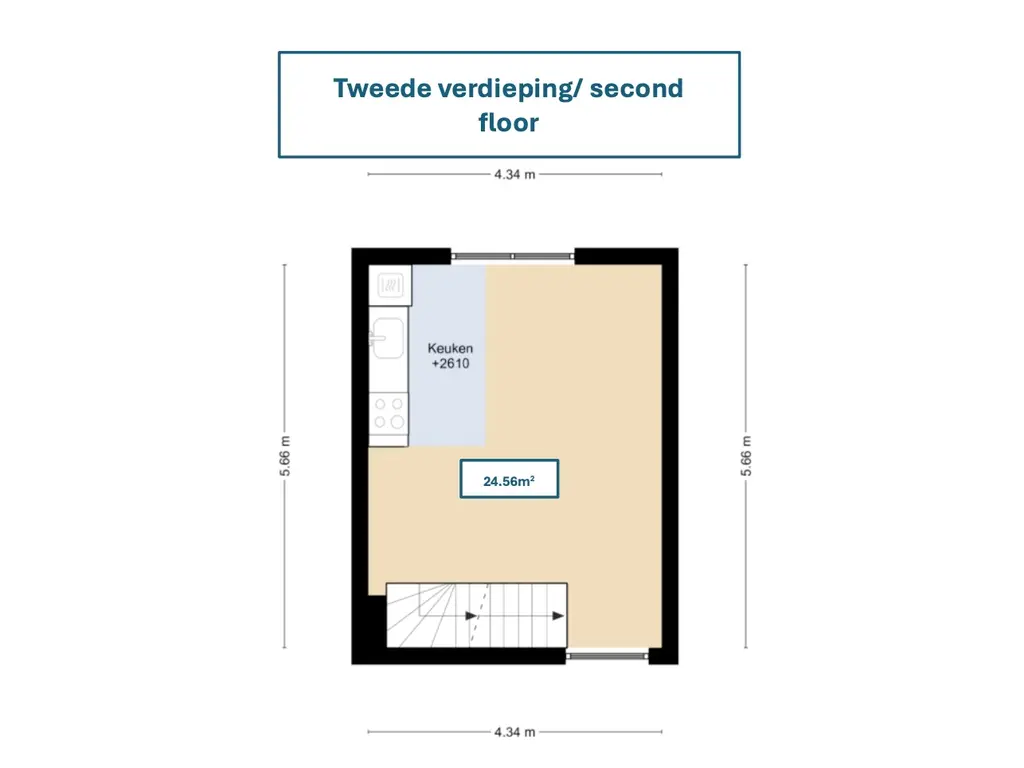 Via de vaste trap op de eerste verdieping bereik je de ruime slaapkamer en moderne badkamer. De badkamer is voorzien van een inloopdouche, toilet en een wastafelmeubel. Ook de wasmachine en droger zijn handig geïntegreerd.