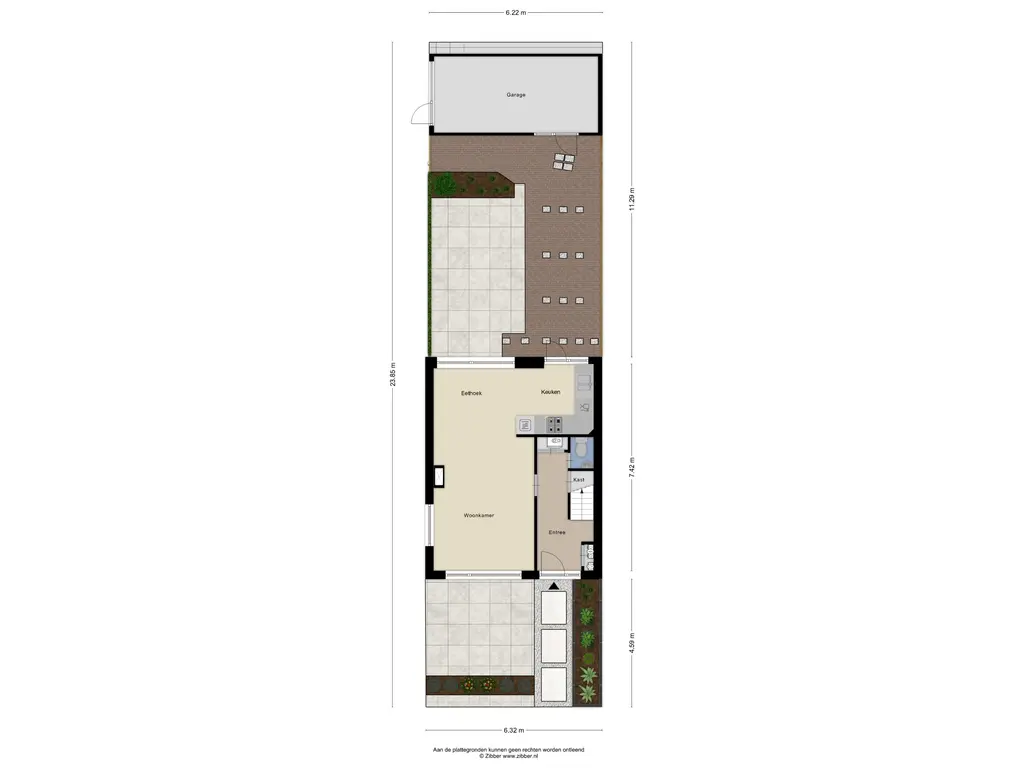 Aan de achterzijde van de woning bevindt zich de open keuken, die is uitgerust met een combimagnetron, vaatwasser, afzuigkap en een vierpits gasfornuis. Vanuit de keuken heeft u direct toegang tot de achtertuin. Achter in de tuin staat een ruime garage, ideaal voor het parkeren van een auto of het opbergen van fietsen en overige spullen.