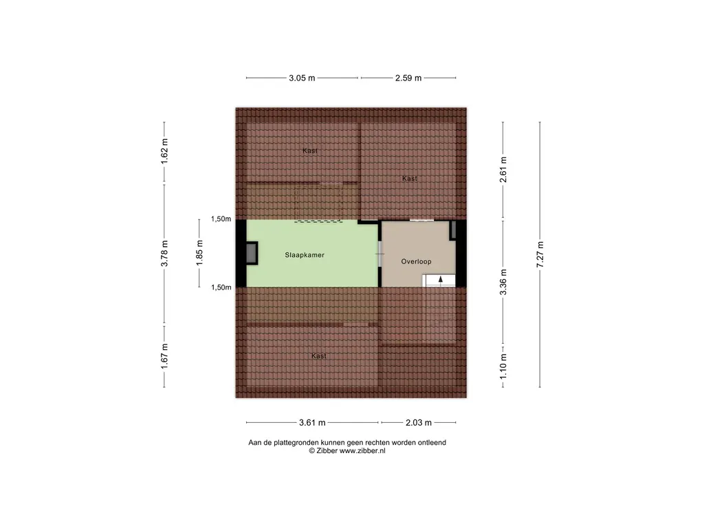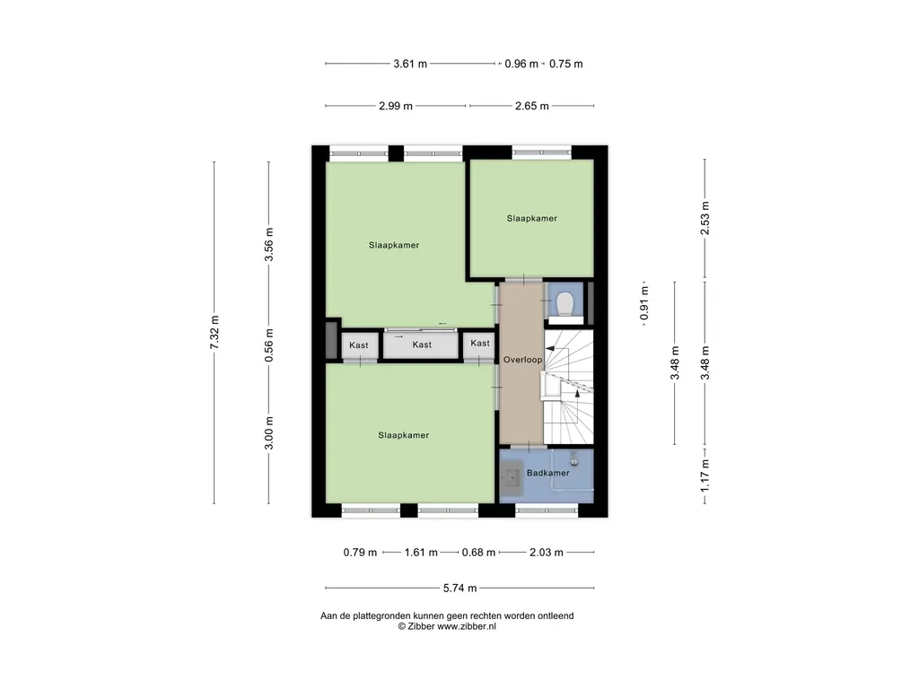 De trap loopt door naar de tweede verdieping, waar zich nog een ruime slaapkamer van respectievelijk 11 m² bevindt. Aan de voorzijde van deze verdieping ligt een royale overloop, die naar wens kan worden ingericht als bergruimte of werkplek.