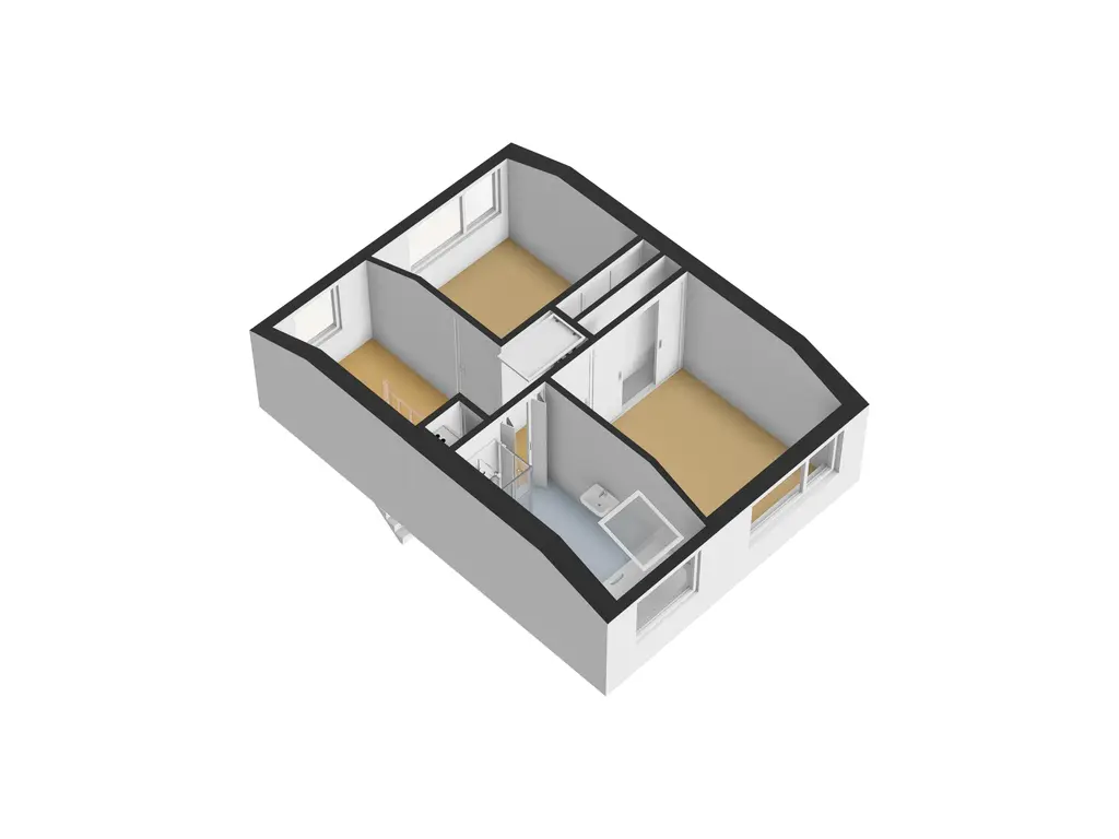 Aan de voorzijde van de woning bevindt zich een slaapkamer met een inbouwkast. Aan de achterzijde ligt de tweede slaapkamer, die beschikt over een ingebouwde schuifwandkast, wat zorgt voor praktische en royale bergruimte.