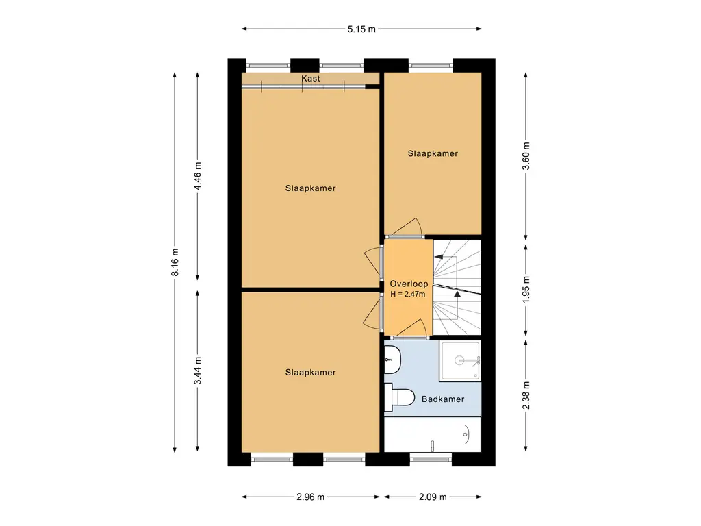 Hier vind je nog eens twee slaapkamers, beide voorzien van brede dakkapellen. Dit maakt de verdieping opvallend ruim en goed bruikbaar. Ideaal als extra slaapkamers, thuiswerkplek of hobbyruimte. Ook is er extra bergruimte achter de knieschotten.
