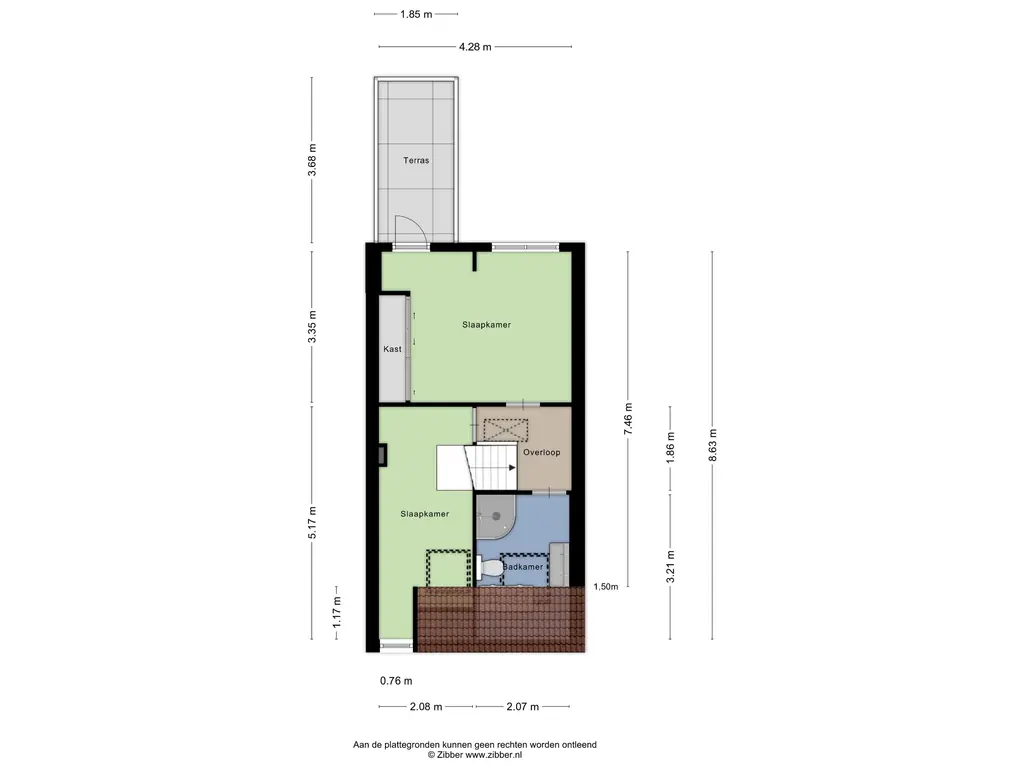 Vanaf de trap bereikt je de overloop, die toegang biedt tot alle kamers op deze verdieping. Aan de achterzijde bevindt zich de ruime hoofdslaapkamer. Dankzij de recht opgetrokken achtergevel is er een opvallend royale ruimte ontstaan, die net dat extra beetje comfort en ruimte biedt. De slaapkamer is voorzien van een praktische inbouwkast en biedt bovendien directe toegang tot het zonnige dakterras.