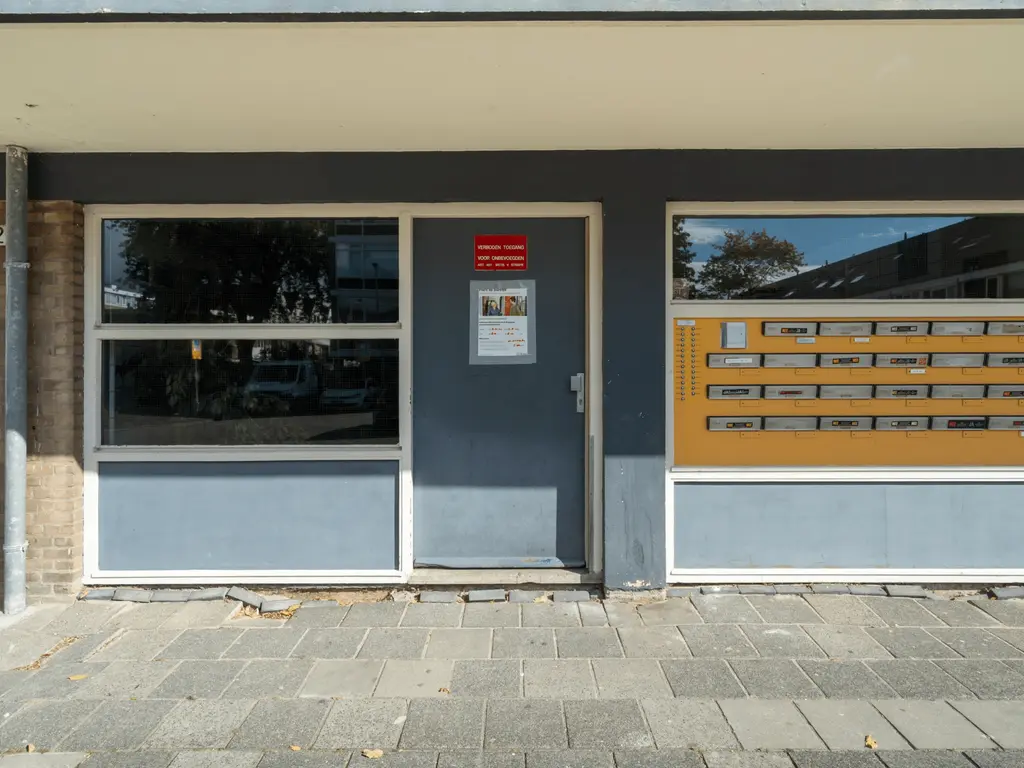 Gezamenlijke, afgesloten entree met bellentableau, brievenbussen en toegang tot de eigen berging in de onderbouw.