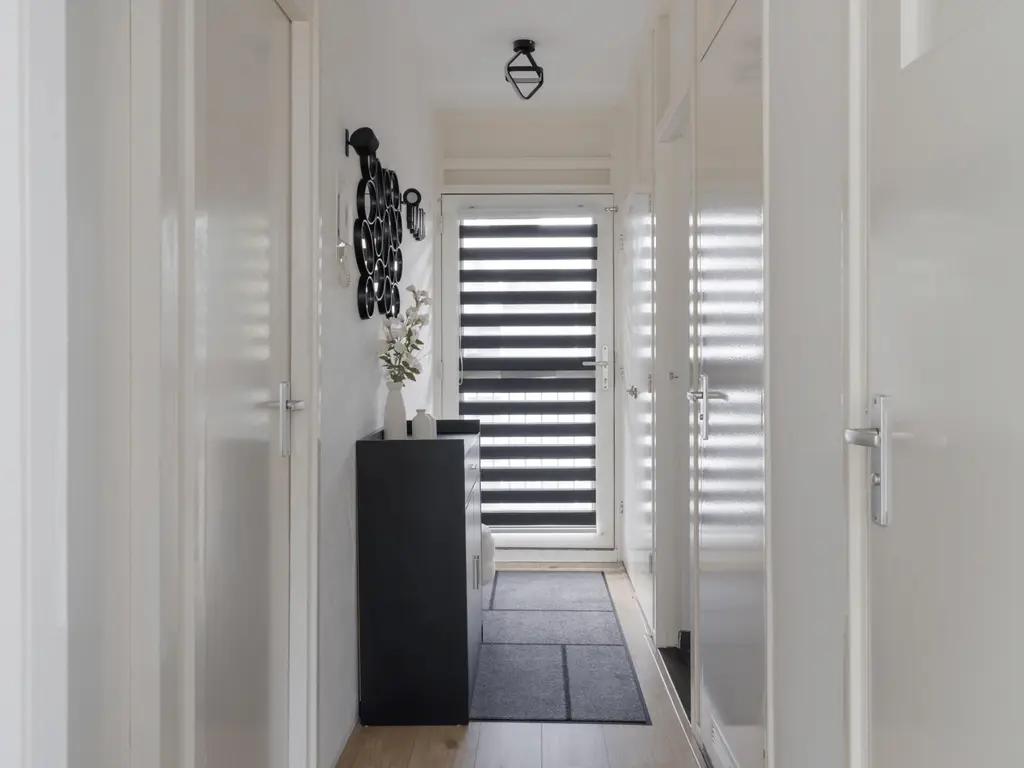 Hal met meterkast, garderobekast, toilet en toegang tot de keuken, slaapkamers, badkamer en woonkamer.