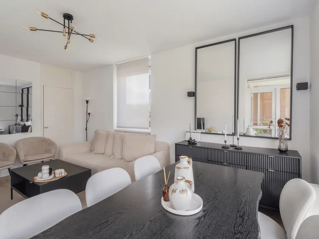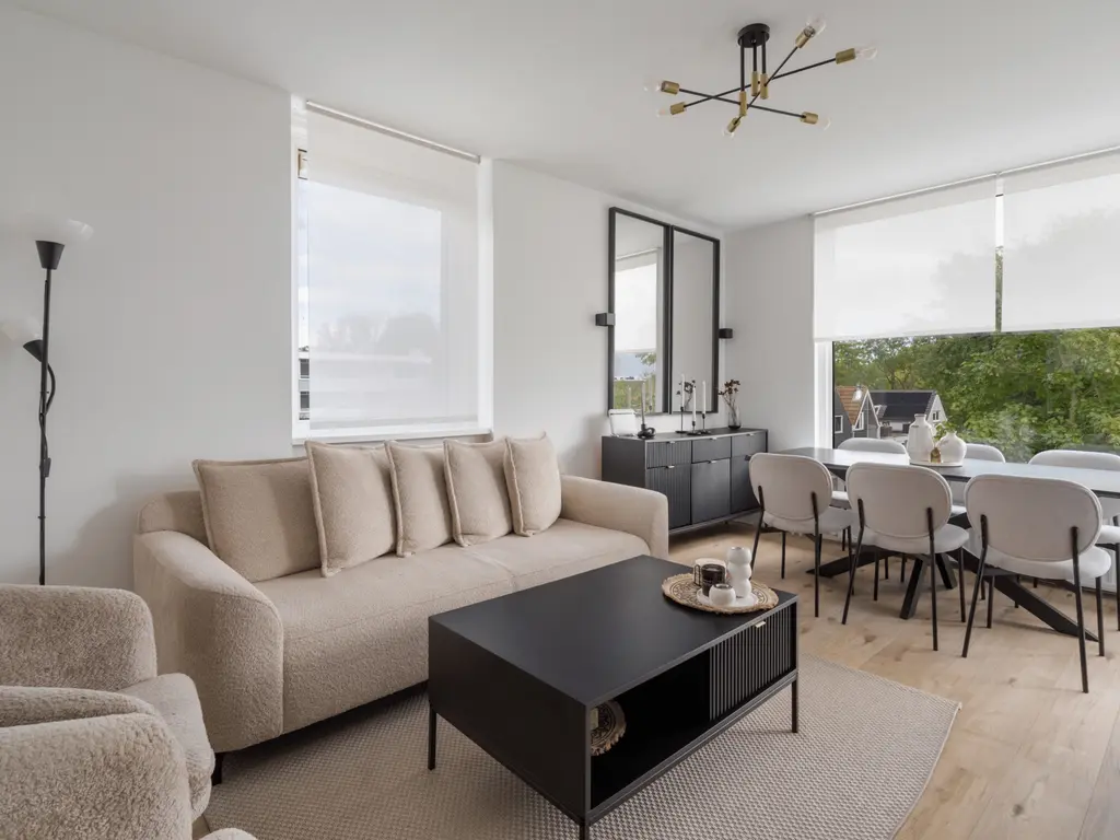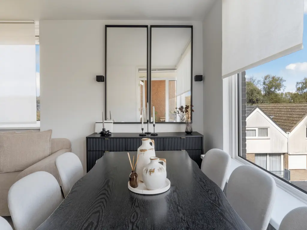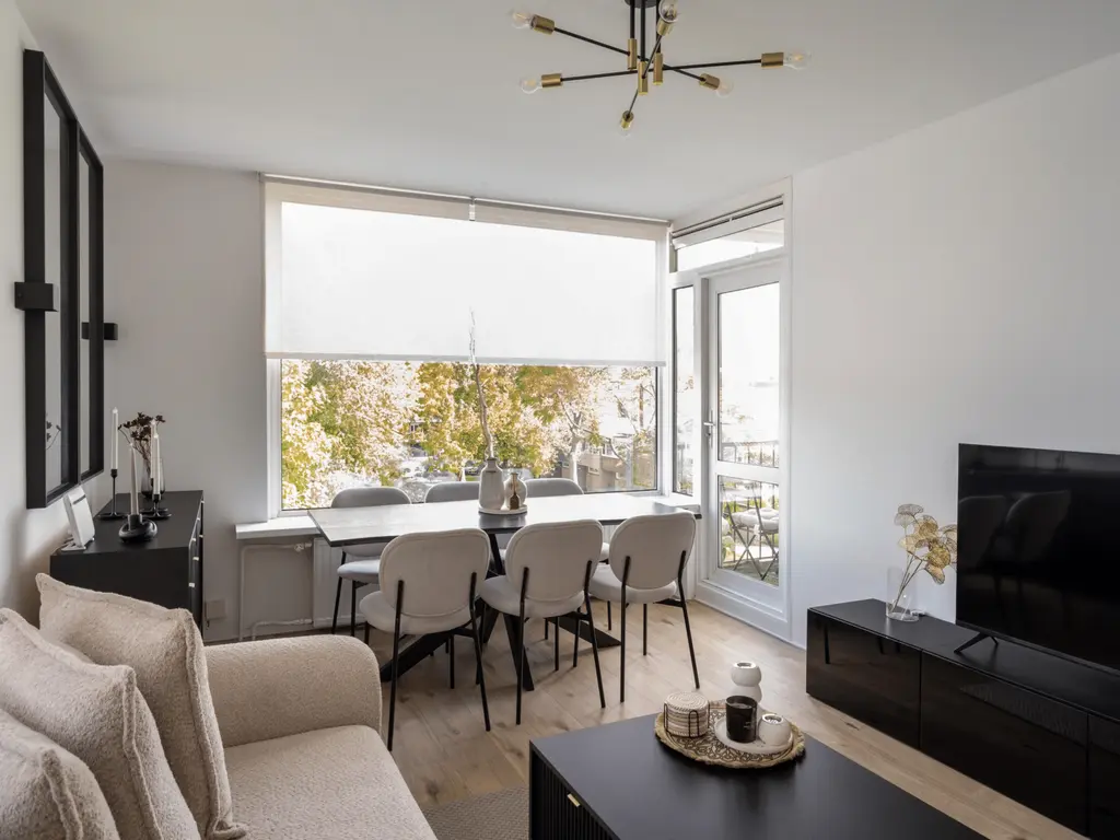 Ruime woon-/eetkamer met toegang tot het balkon op het oosten.