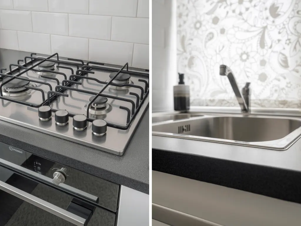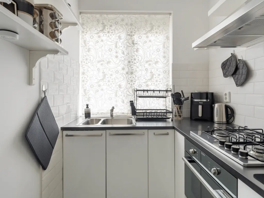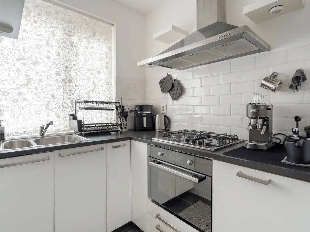 Keuken aan de galerijzijde, voorzien van de benodigde huishoudtoestellen.