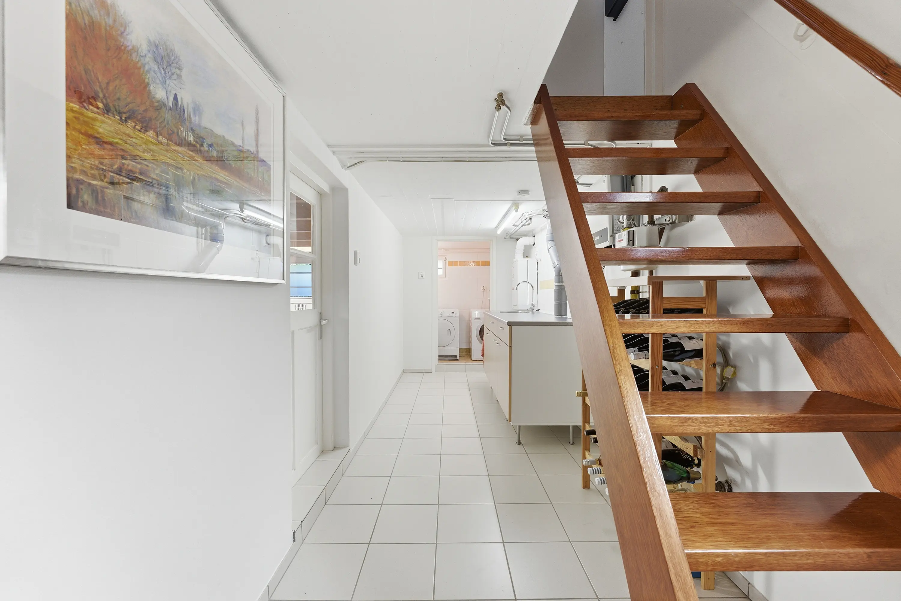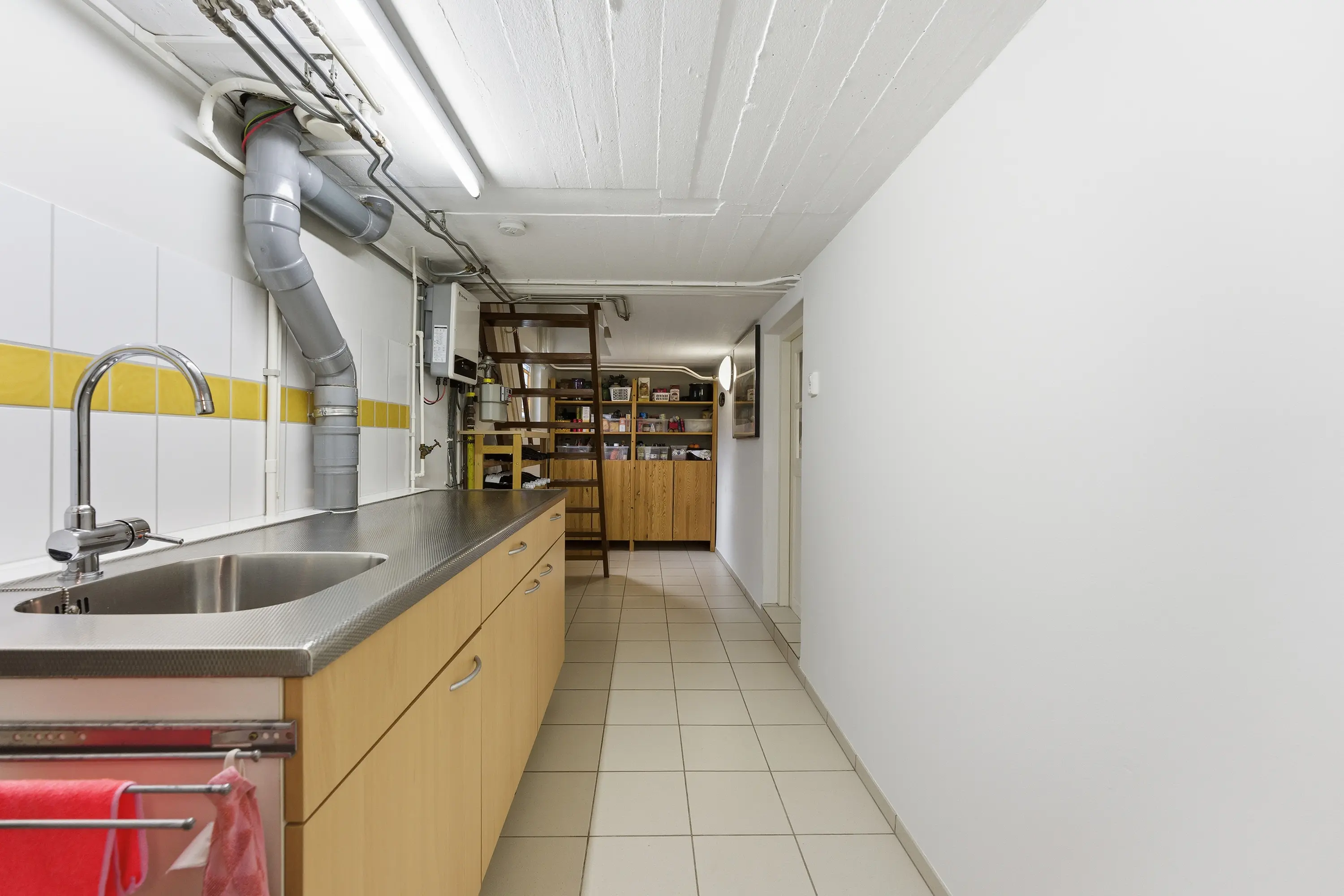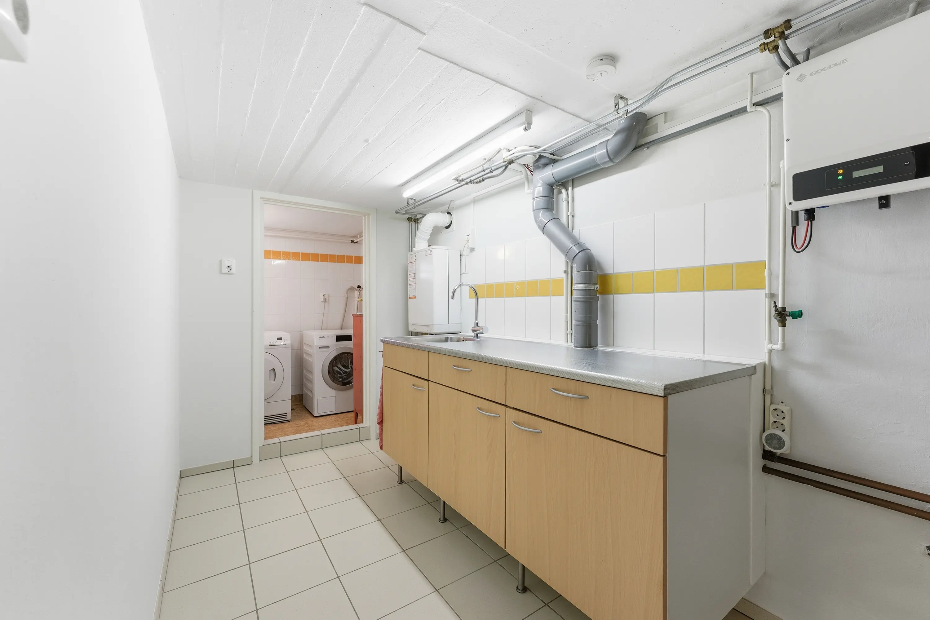 In het souterrain bevindt zich een ruime wasruimte met opstelplaats voor wasmachine en droger, een aanrecht met waterkraan en de HR ketel uit 2019. Daarnaast is er een grote ruimte die momenteel dienstdoet als opslag en werkplaats, voorzien van een werkbank. Vanuit deze ruimte is er eveneens een deur naar de achtertuin. Deze verdieping telt circa 45 m2 maar valt vanwege de hoogte niet binnen de woonoppervlakte. De woning is voorzien van geïsoleerde spouwmuren en ook het plafond van de bovenste verdieping is geïsoleerd.