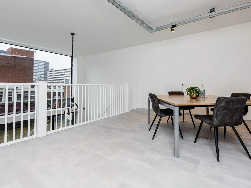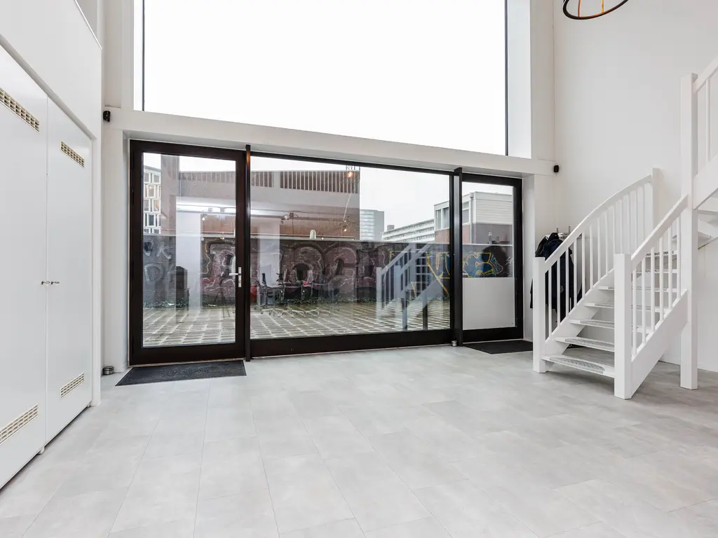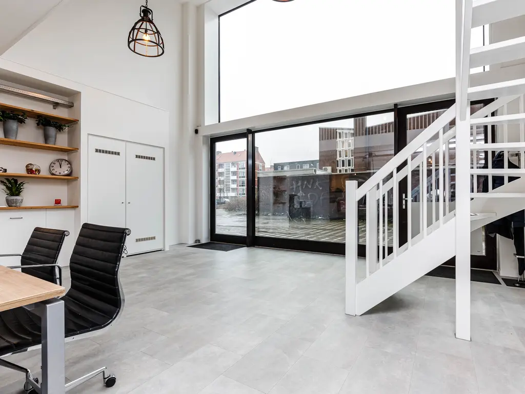 Loft-achtig" wonen en of werken met een unieke plafondhoogte van bijna 6 meter, in een energiezuinig en strak afgewerkte woning of een combinatie met werken is in dit appartement uit 2020 mogelijk. De unit op de begane grond is nu in gebruik als kantoor maar met enige creativiteit om te bouwen naar een volledige woning of een combinatie van wonen en werken. Het appartement van 112m2 is verdeeld over twee woonlagen. De voor de koper optionele twee eigen parkeerplaatsen bevinden zich vooraan in de parkeergarage. De erfpacht is voortdurend tot 2066 afgekocht! Doordat de vloer is voorzien van vloerverwarming en overal HR+++ glas, heeft lage stookkosten en een energielabel A.