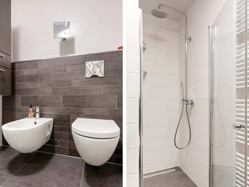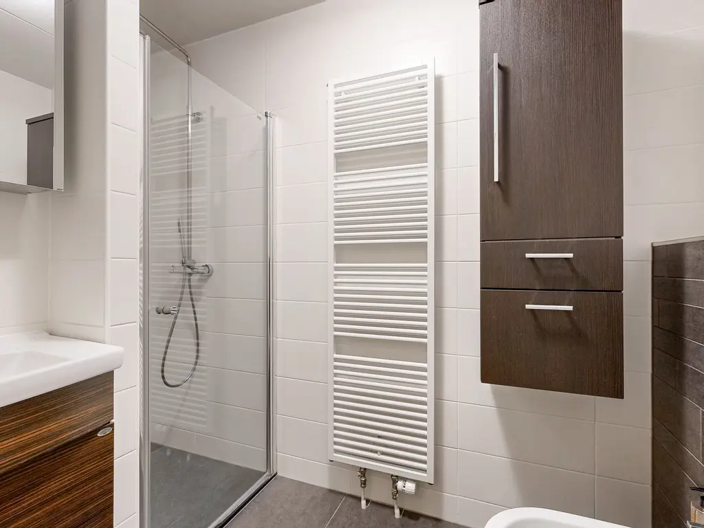 Verder zijn er 2 slaapkamers en een moderne luxe badkamer met ruime inloopdouche, een bidet, (sani-broyeur) toilet, wastafelmeubel met spiegelkast en een design radiator.
