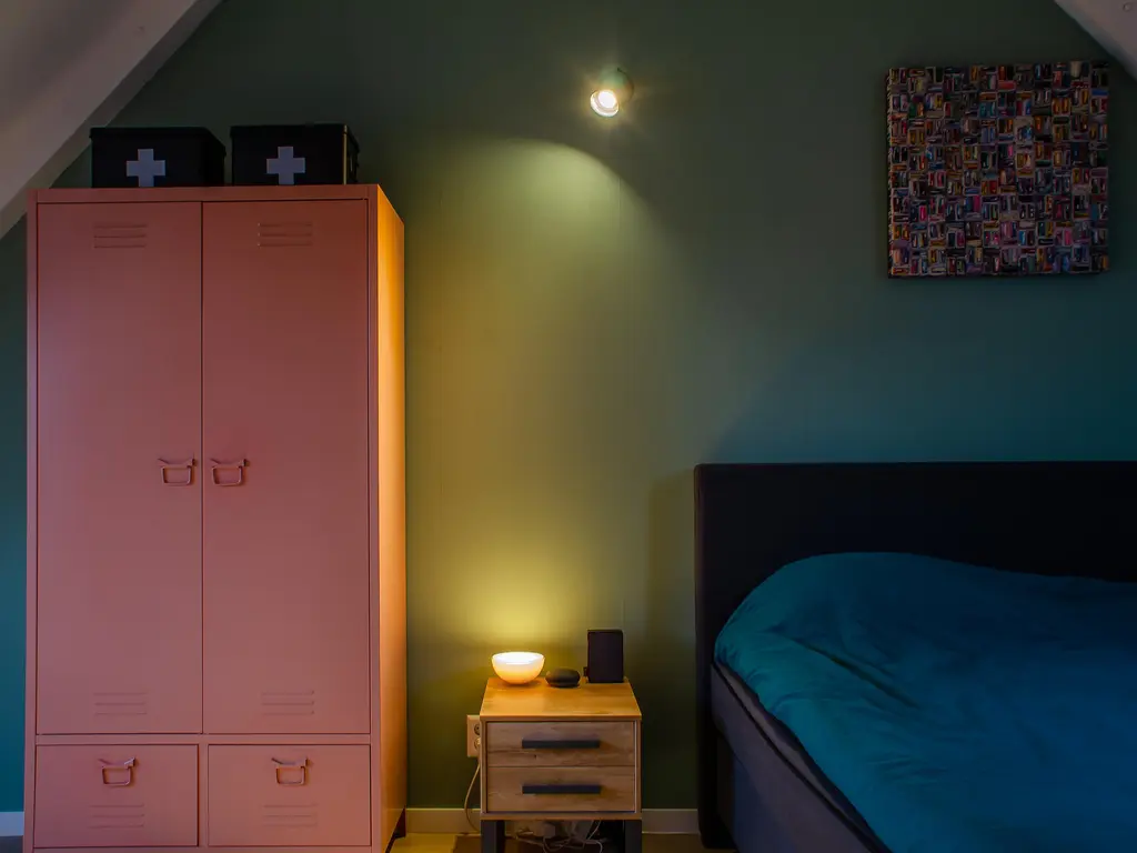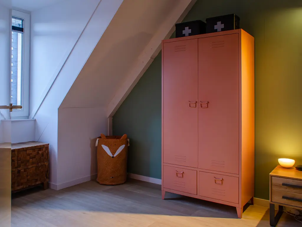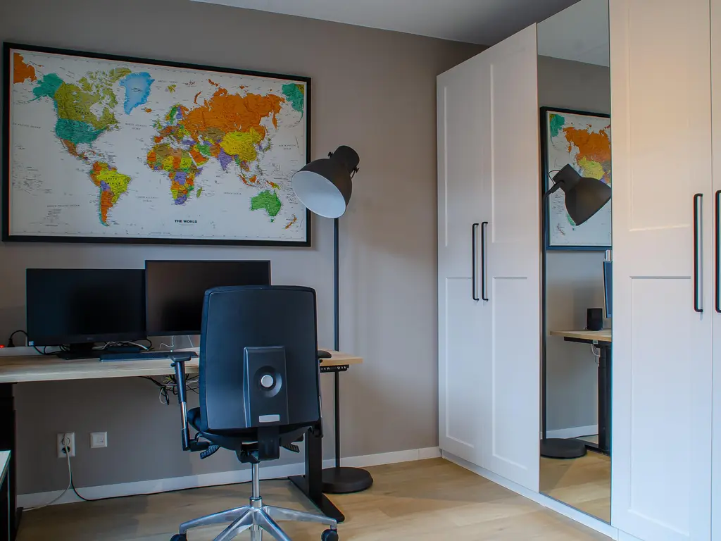 Op de tweede verdieping bevindt zich de derde slaapkamer die eveneens ruim van formaat is. Ook op deze verdieping vindt u een PVC-vloer met vloerverwarming als hoofdverwarming. Op de overloop is er voldoende ruimte voor het plaatsen van een wasmachine en droger. Daarnaast is er nog de technische ruimte met een WTW-systeem (Warmte Terug Win) en is er veel bergruimte gecreëerd, netjes weggewerkt achter schotten.
