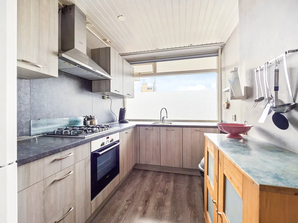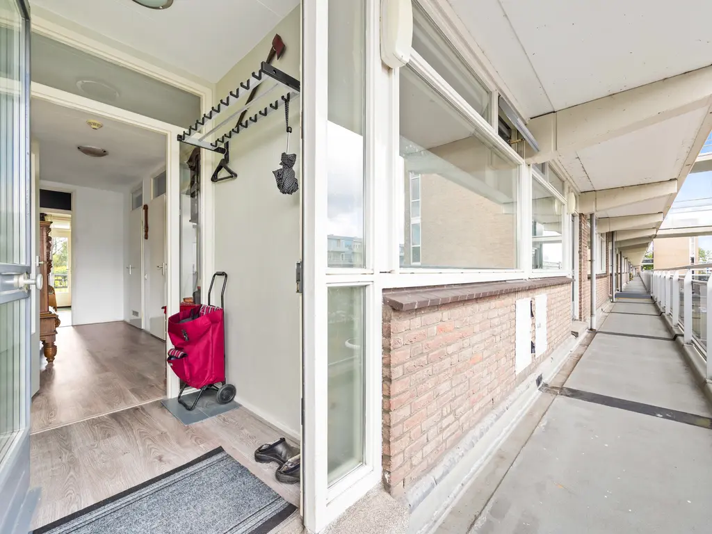 Via het tochtportaal komt u binnen in de hal. Vanuit hier heeft u toegang tot de keuken (galerijzijde), badkamer, toilet (met fonteintje), twee slaapkamers en de woonkamer. De keuken is uitgerust met een vijfpits gasfornuis met afzuigkap, oven, vaatwasser (Siemens) en koel- en vriescombinatie. De badkamer is voorzien van een douche, wastafel met meubel en wasmachine aansluiting. Ook bevindt zich hier de opstelplaats van de boiler. Aan de achterzijde ligt de ruime en lichte woonkamer met aangrenzende eetkamer met vaste kasten. Via een deur en hal vanuit de woonkamer krijgt u toegang tot de derde slaapkamer en een ruime bergruimte waar zich ook de meterkast bevindt. Via de woonkamer, eetkamer en slaapkamer aan de achterzijde krijgt u toegang tot het zonnige balkon over de volledige breedte.