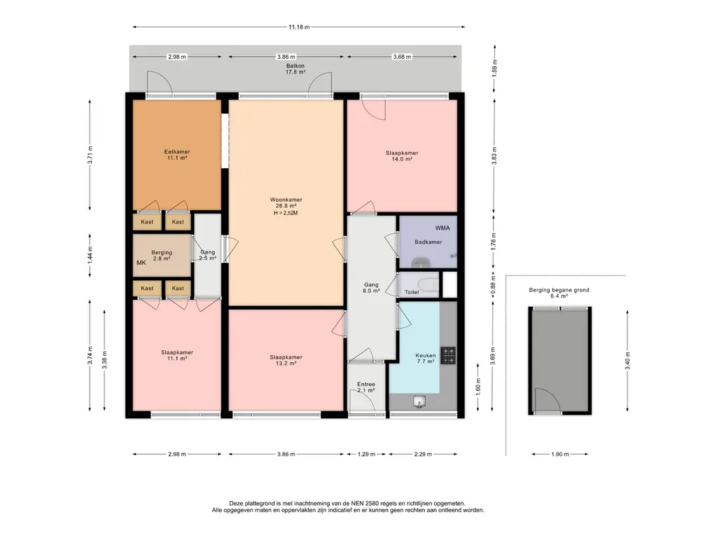 Drie slaapkamers, uitbreiden tot 4 is mogelijk.