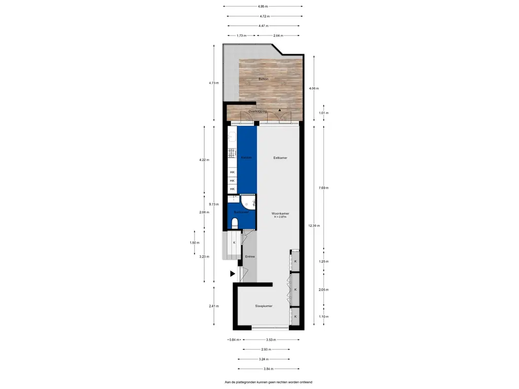 Dit appartement bevindt zich op de eerste verdieping. Naast de woon- en slaapkamer beschikt het appartement over een badkamer, uitgerust met douche, wastafel, en vloerverwarming.