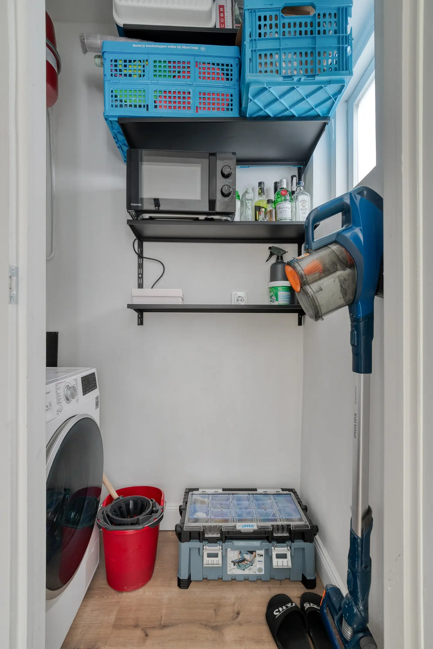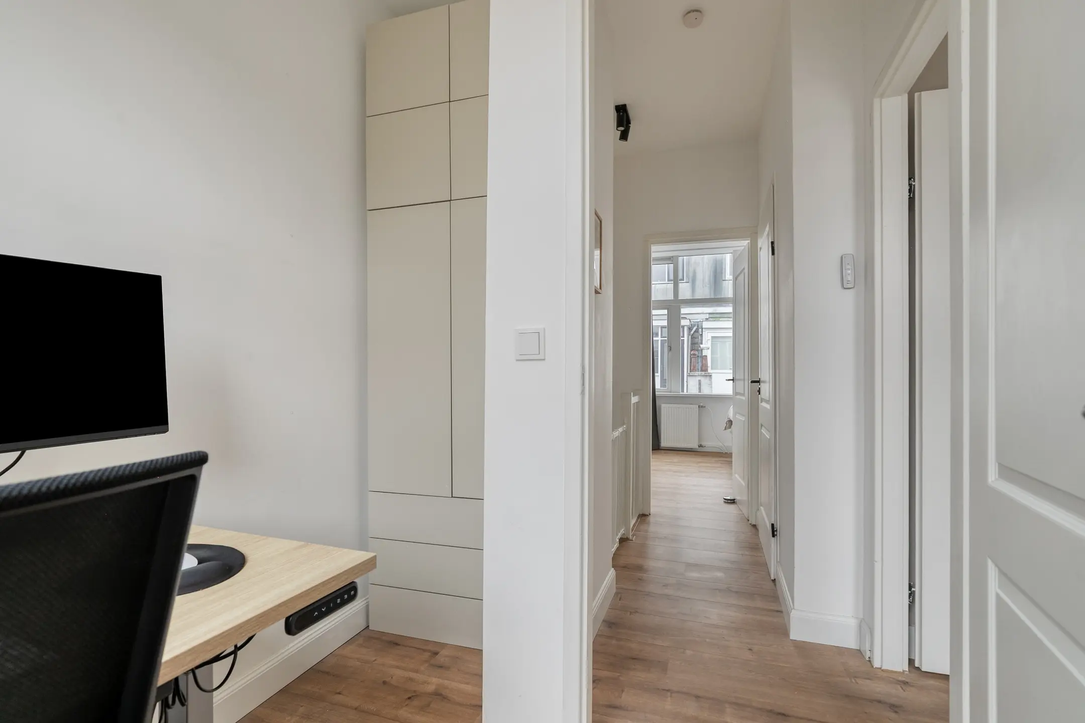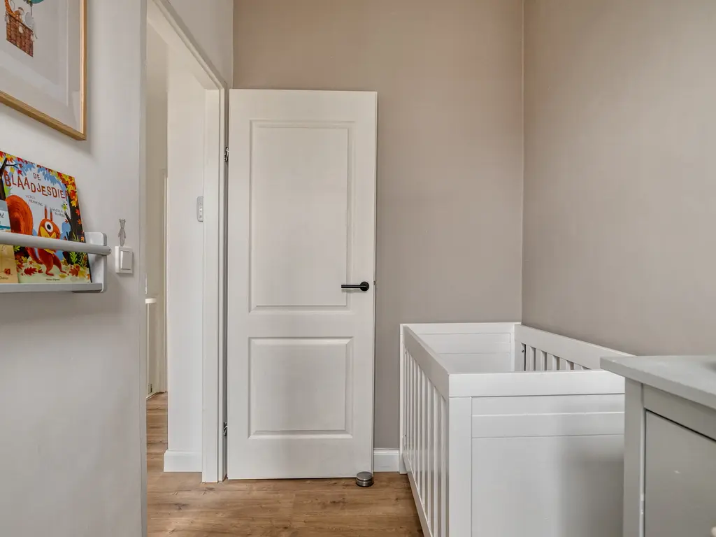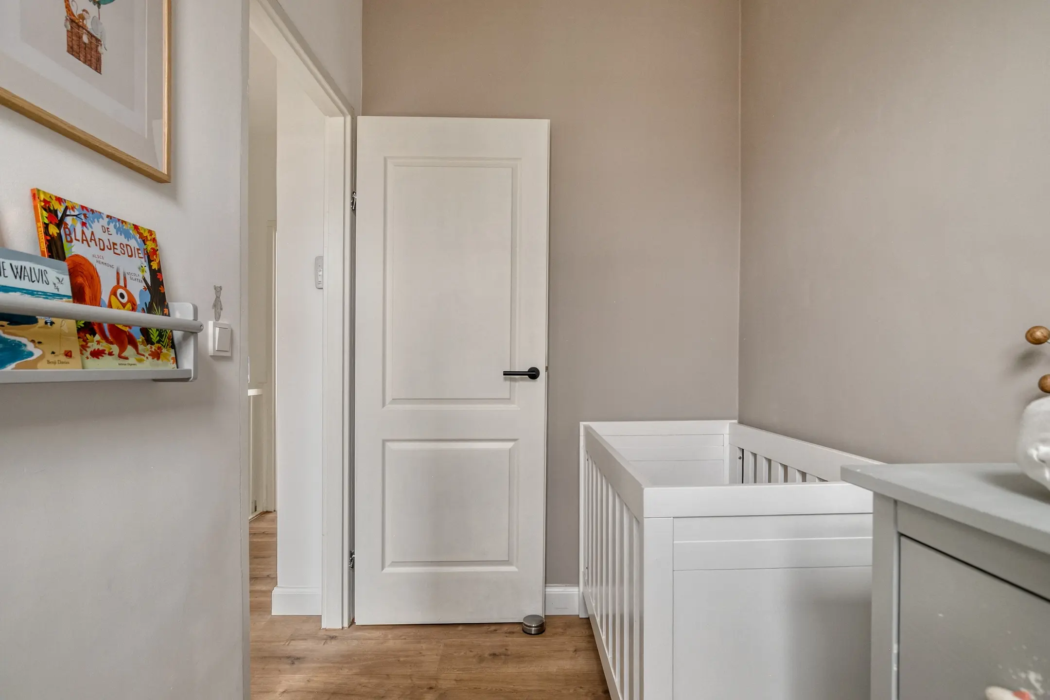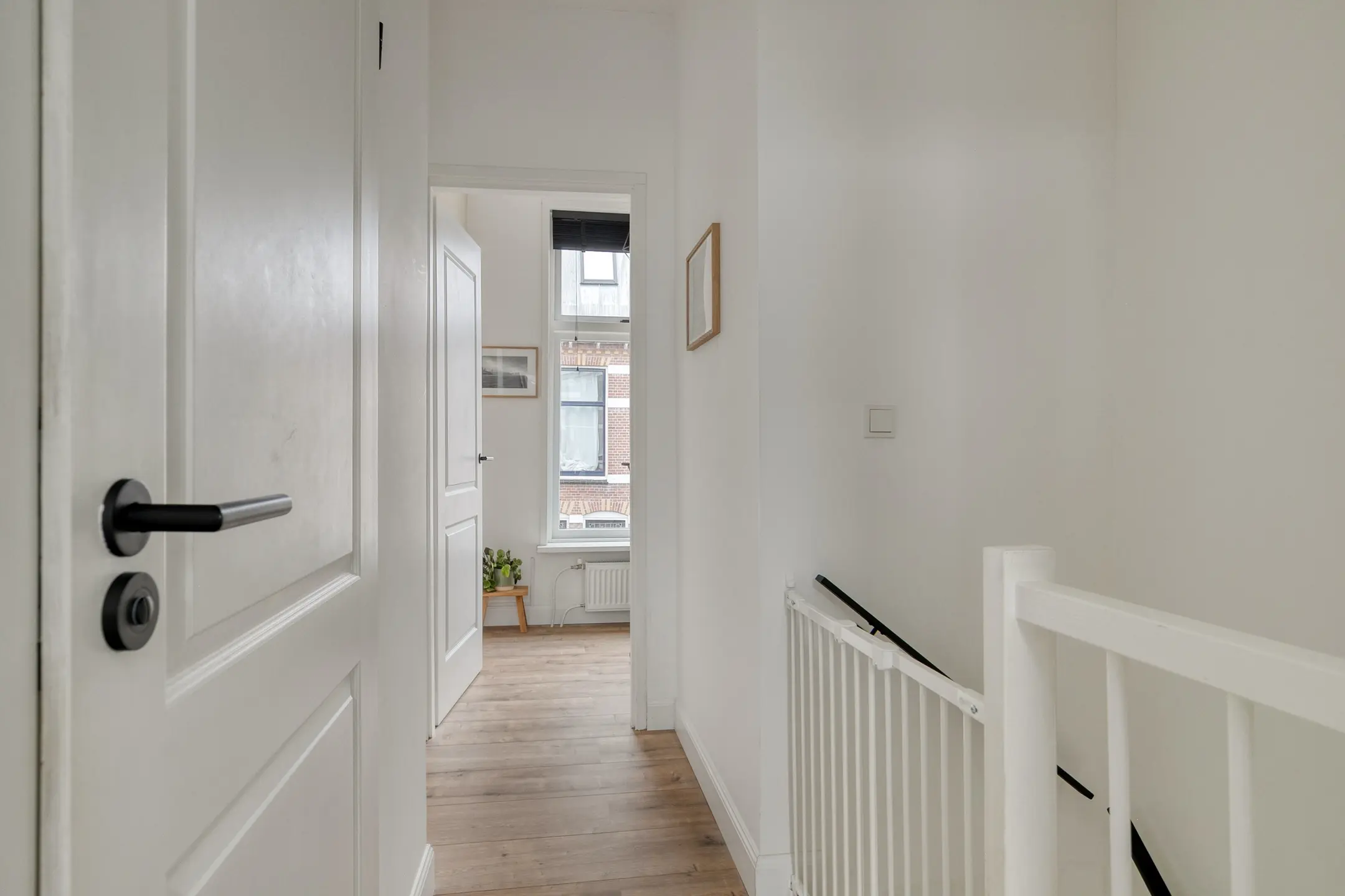 Op de eerste verdieping leidt de overloop naar drie slaapkamers, waarvan één royale kamer aan de achterzijde en twee aan de voorzijde. De twee slaapkamers aan de voorzijde zijn goed te gebruiken als kinder- of werkkamer en beide voorzien van rolluiken. De luxe badkamer, in 2021 volledig vernieuwd, is centraal gelegen en voorzien van een inloopdouche, wastafelmeubel en een tweede toilet.
