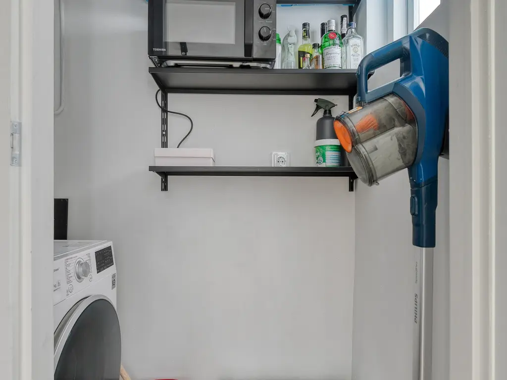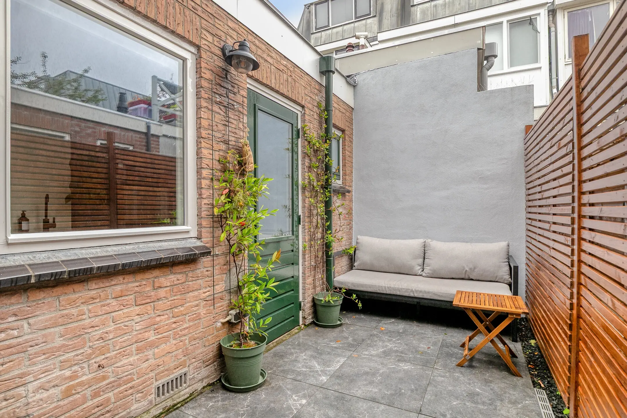 Op de begane grond bevindt zich de entree met meterkast en separaat toilet met fontein. Vanuit hier kom je in de ruime en lichte woonkamer met een moderne afwerking, open trap naar de eerste verdieping en openslaande deuren naar de tuin. Dankzij de hoge plafonds en grote raampartijen geniet de woonkamer de hele dag van een optimale lichtinval. In de uitbouw, aan de achterzijde van de woning, ligt de luxe keuken (Kvik, 2022) die is uitgerust met hoogwaardige AEG-apparatuur, waaronder een vaatwasser, oven en inductiekookplaat. Vanuit de keuken is er tevens toegang tot de zonnige patiotuin, die in 2023 volledig vernieuwd is. De ruime bergkast met aansluitingen voor wasapparatuur en cv-ketel is via de keuken bereikbaar.