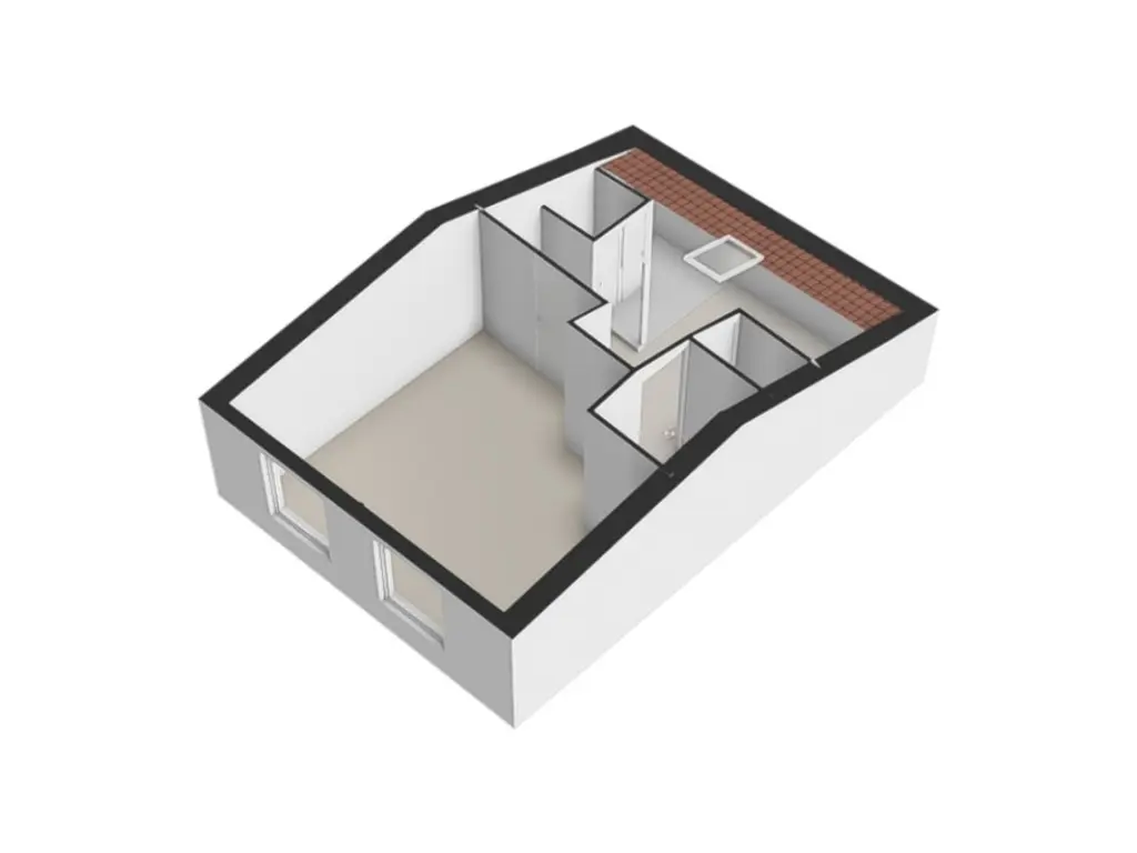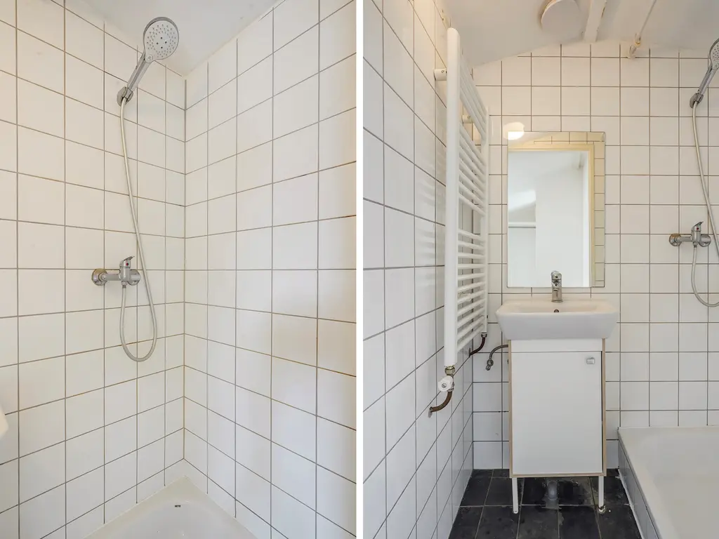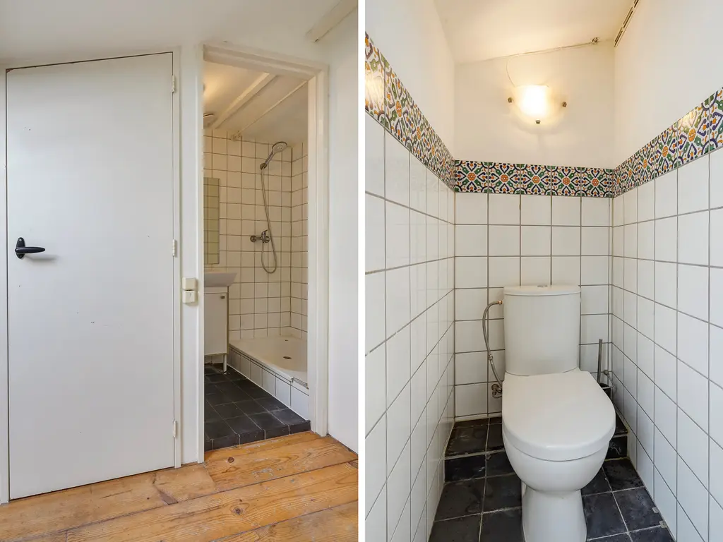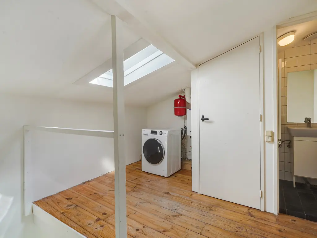 Overloop, bergkast, toilet, opstelling CV-combiketel en aansluiting voor wasmachine, ruime slaapkamer (voorheen 2 kleinere slaapkamers) en badkamer voorzien van douche en vaste wastafel.
