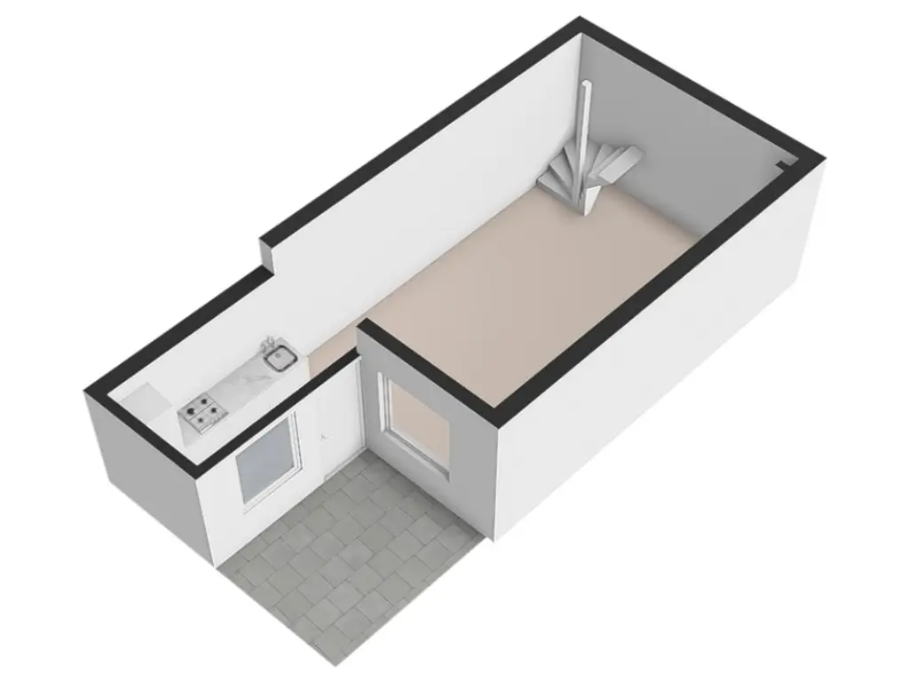 Middels voortuin toegang tot de woning, entree via L-vormige keuken in de uitbouw met o.a. 4-pits gaskookplaat, afzuigkap. Ruime woonkamer met goede plafondhoogte.