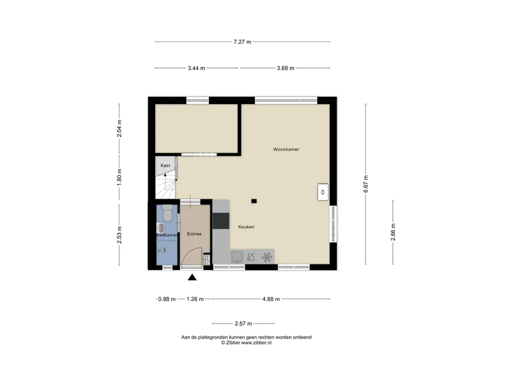 Via de entree kom je binnen in de hal met toegang tot de badkamer en de leefruimtes.