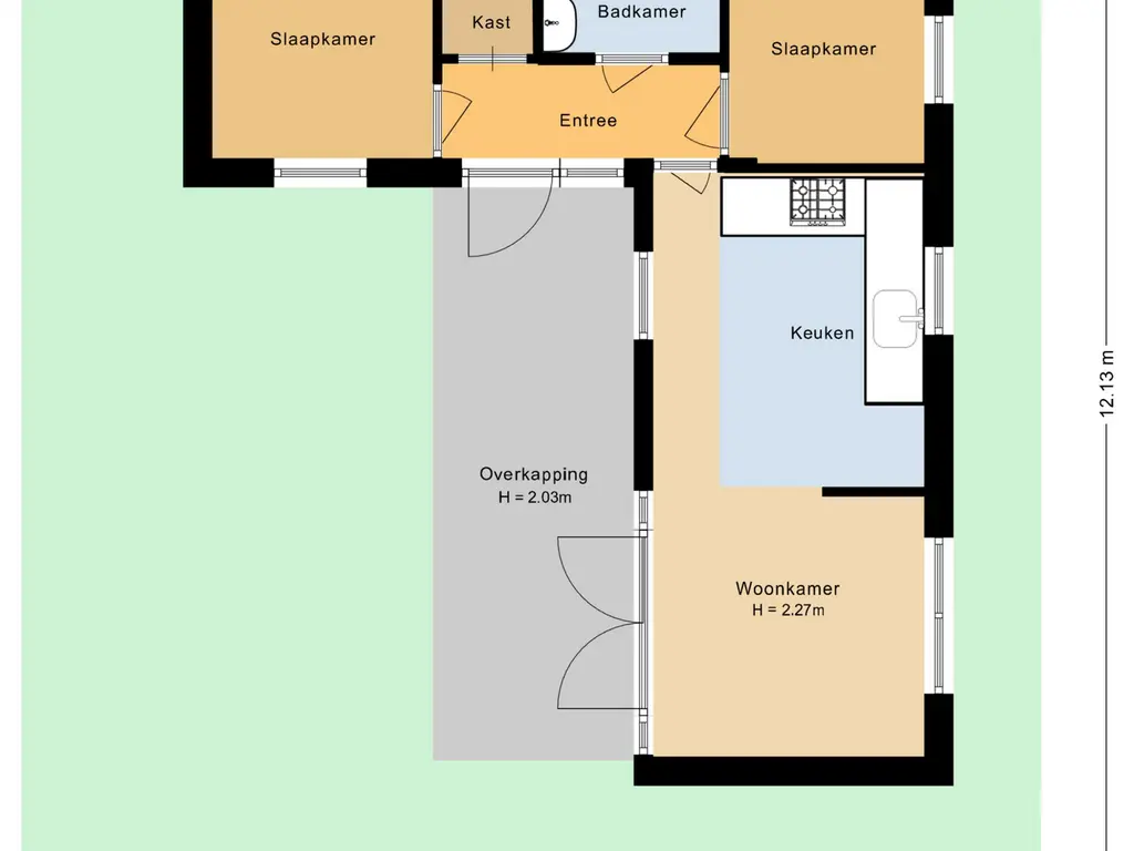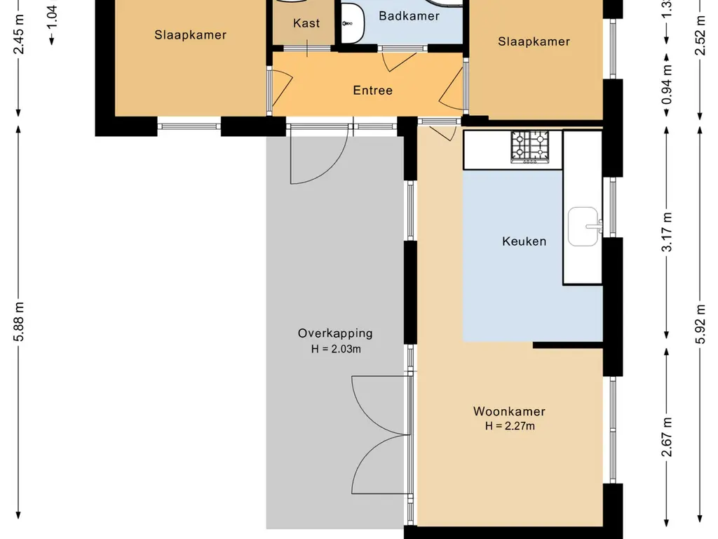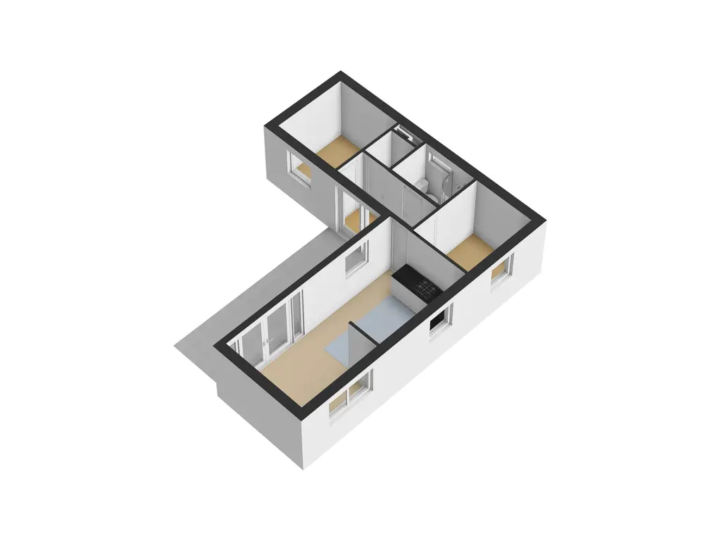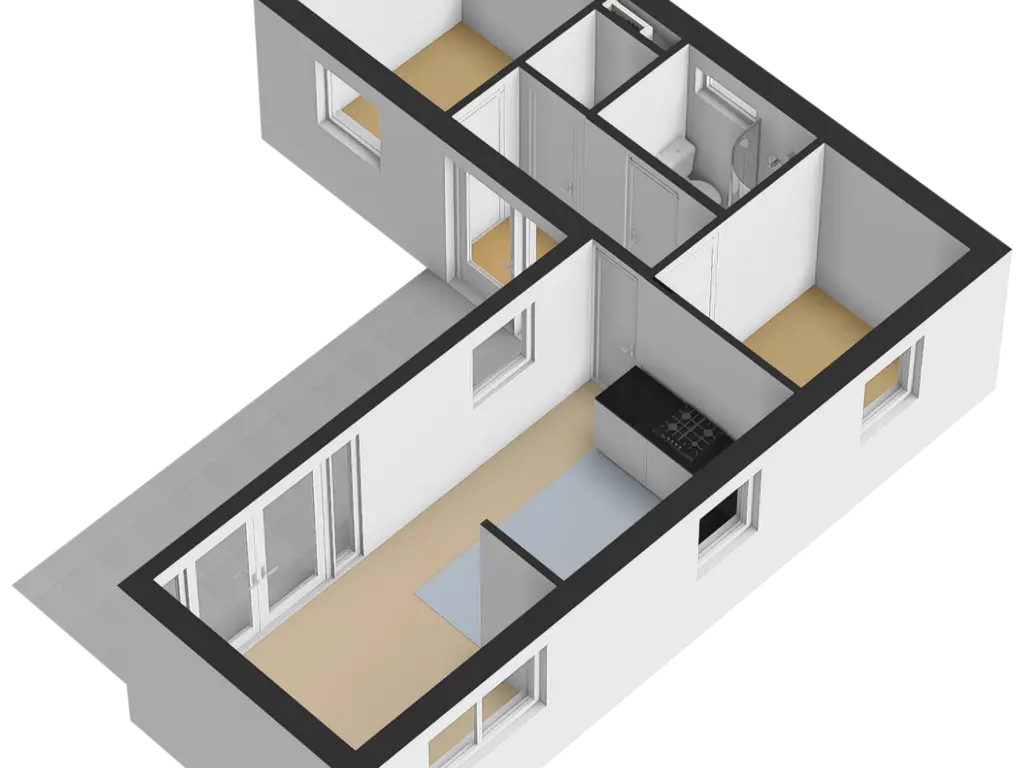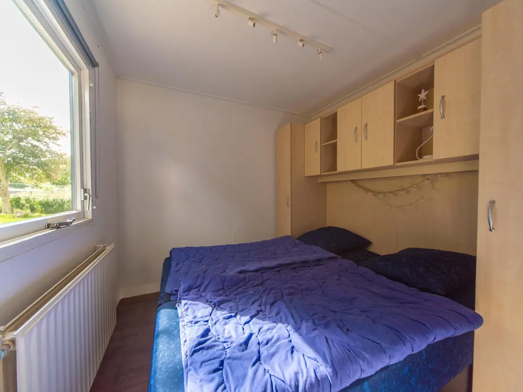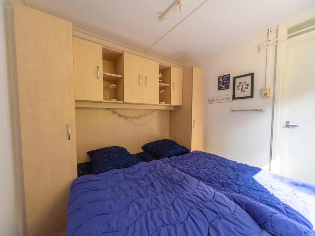 Als we binnenkomen in de hal valt gelijk het natuurlijke zonlicht op wat door het grote raam naast de voordeur naar binnenkomt. De centraal gelegen hal biedt toegang tot 2 slaapkamers van verschillend formaat, waarbij er in de grote slaapkamer een 2 persoons bed met kastombouw voor u klaar staat waar u nog de nodige spulletjes in kunt opbergen. De tweede slaapkamer is momenteel nagenoeg leeg, maar u zou hier prima een stapelbed in kunnen plaatsen, zodat u hier met 4 personen heerlijk kunt verblijven.