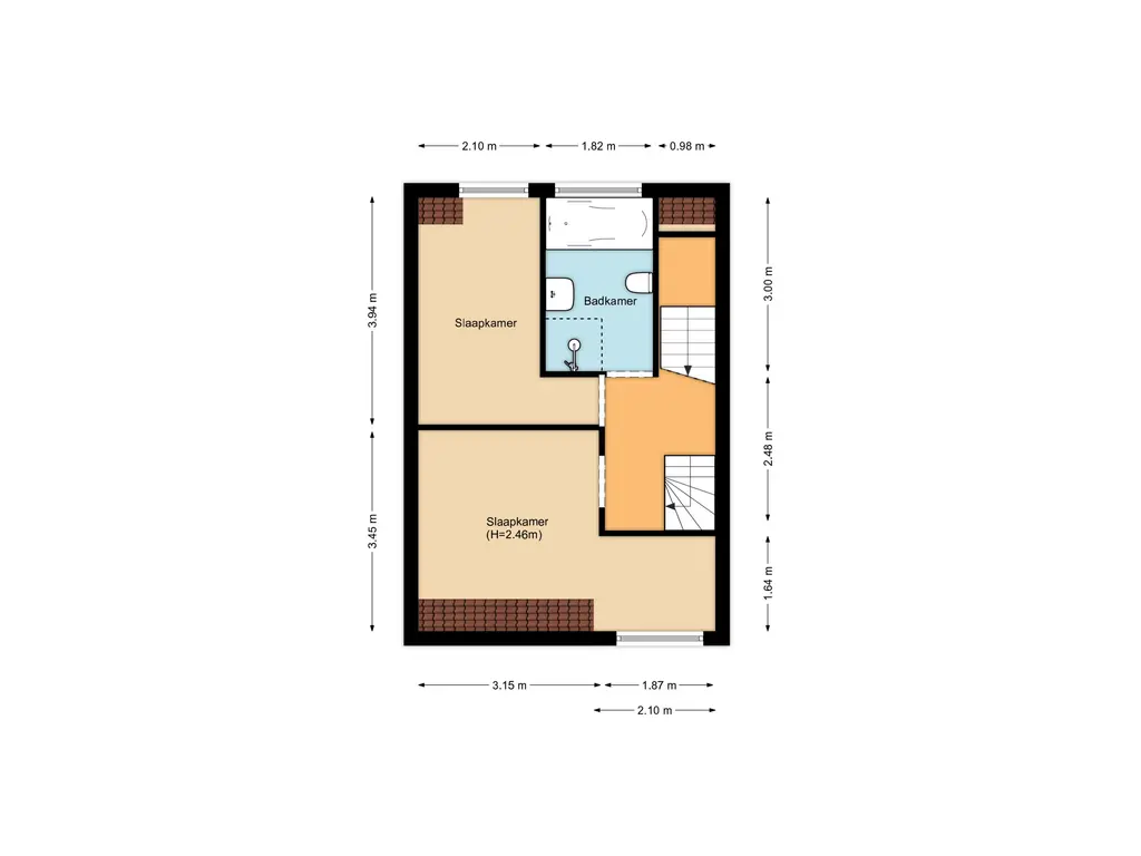 Vanaf de overloop zijn twee ruime slaapkamers en de badkamer bereikbaar. De slaapkamer aan de achterzijde is riant te noemen. De badkamer is ruim en voorzien van alle comfort.