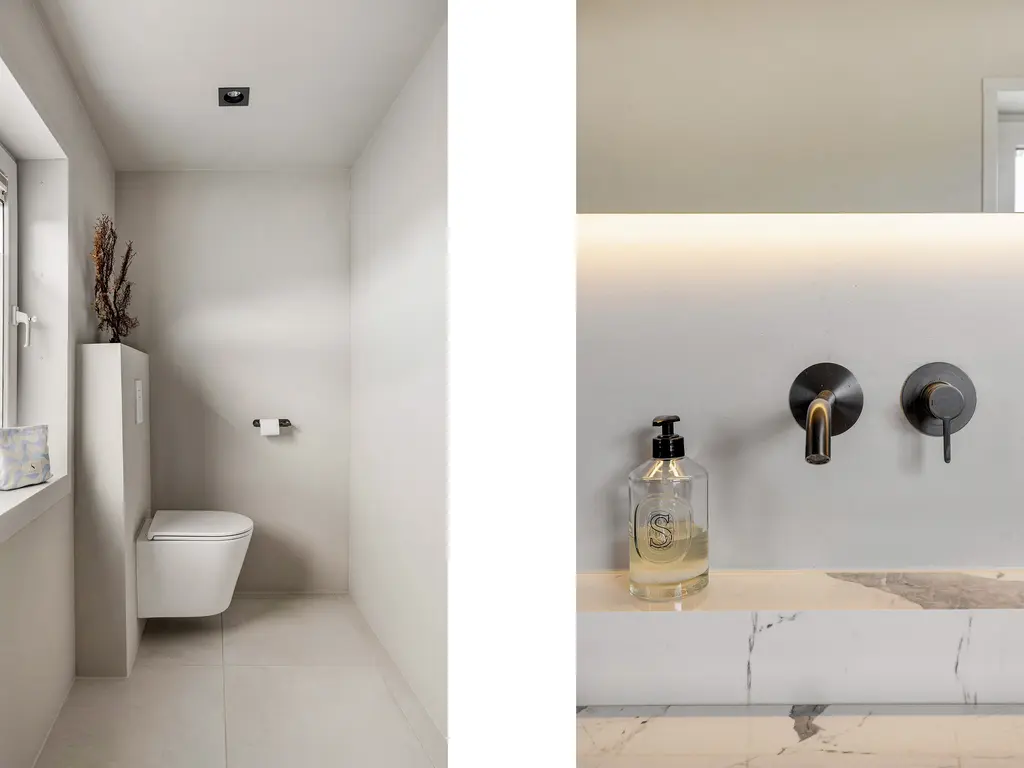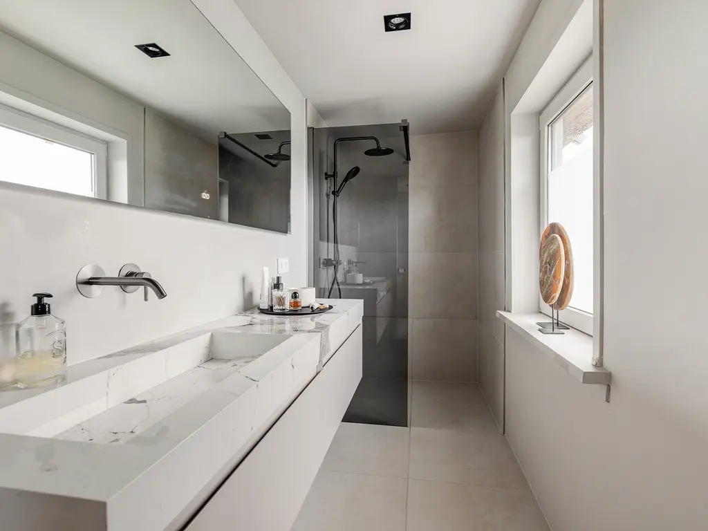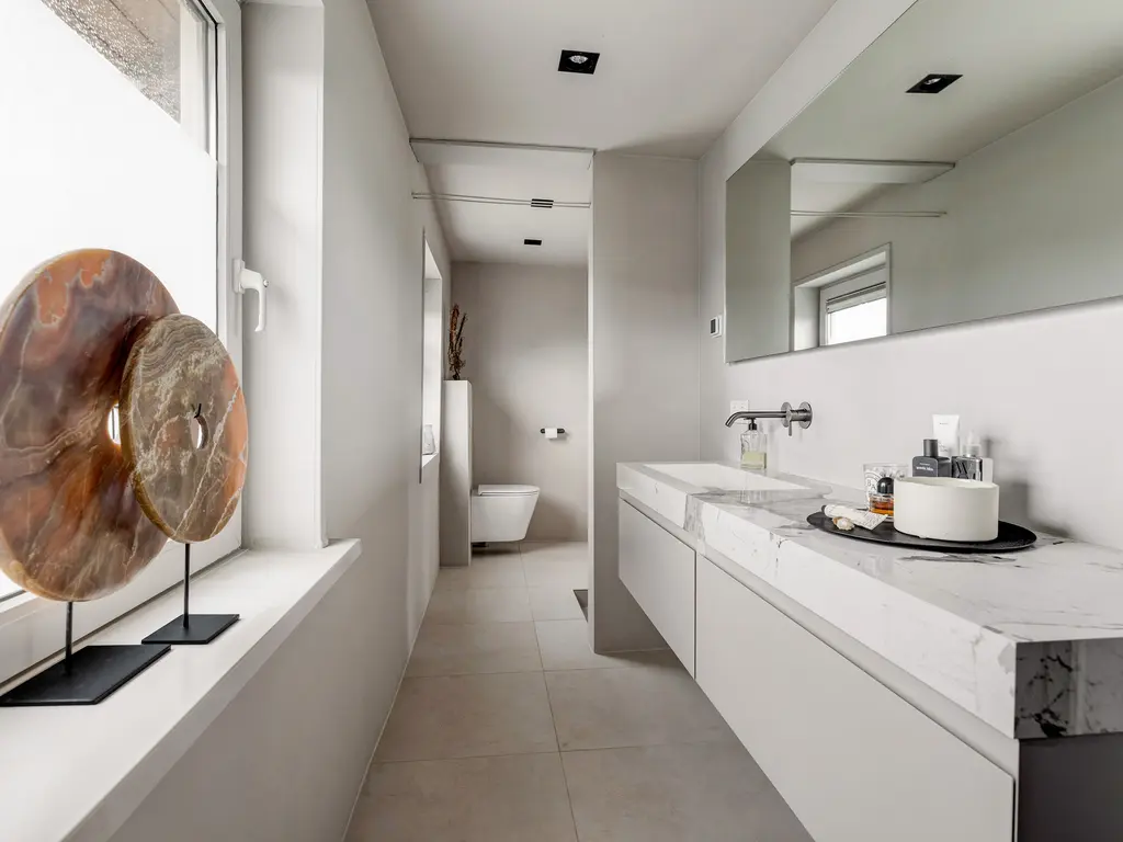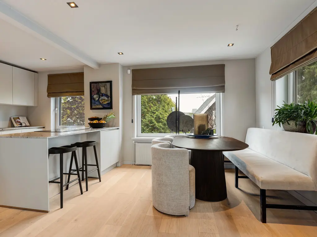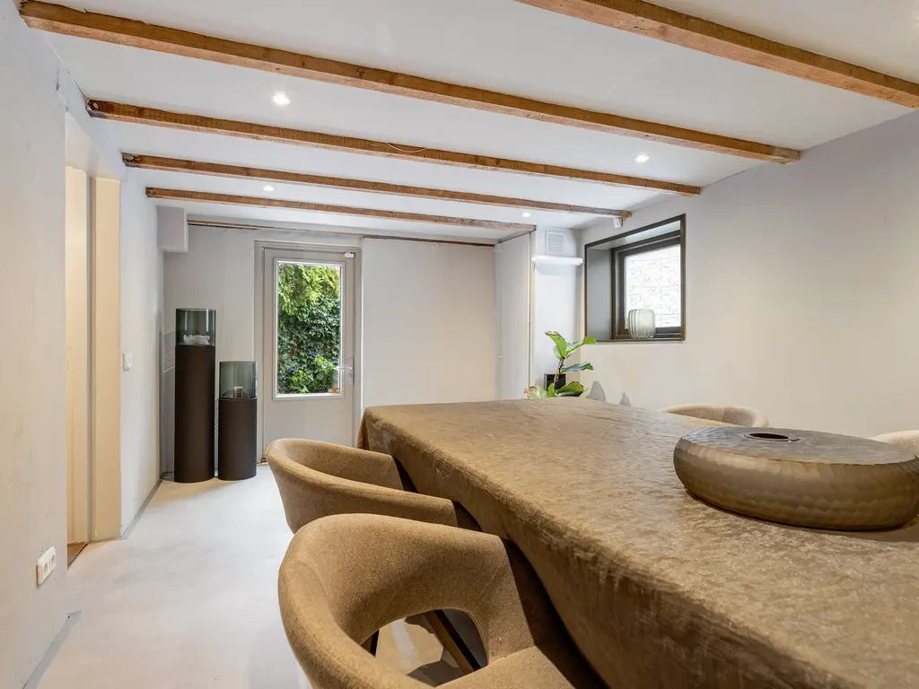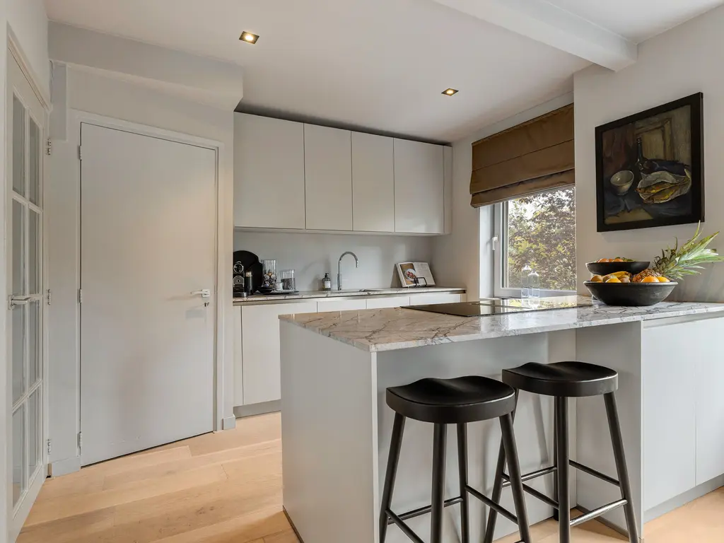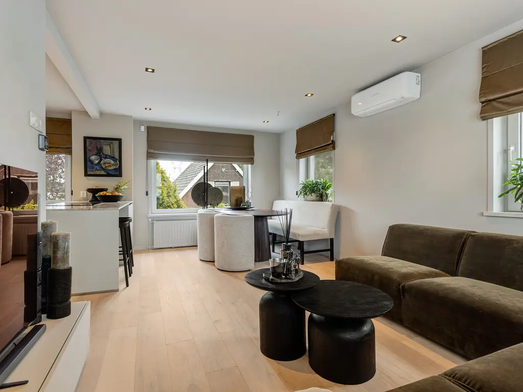 Op de bel-etage valt meteen het lichte, royale karakter van de woonkamer op. Ingebouwde spotverlichting en airconditioning zorgen voor een luxe en comfortabele sfeer, terwijl de shutters het geheel stijlvol afronden. De nieuwe open keuken is een absolute eyecatcher: een inductiekookplaat met geïntegreerde afzuiging, marmeren aanrechtblad, Quooker, vaatwasser, koelkast en combi-oven maken koken een waar plezier. De woonkamer en keuken zijn naadloos verbonden, waardoor een open, uitnodigende leefruimte ontstaat. De vloer is uitgevlakt en afgewerkt met warme eikenhouten vloerdelen. De vernieuwde en uitgebreide meterkast biedt optimale functionaliteit.